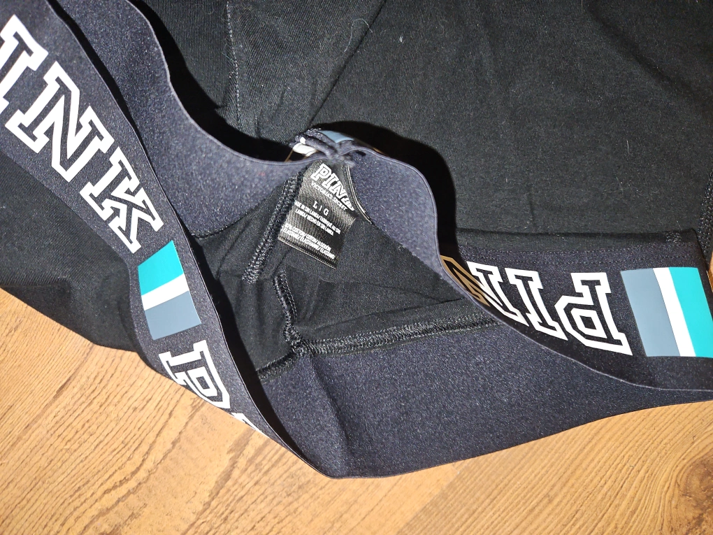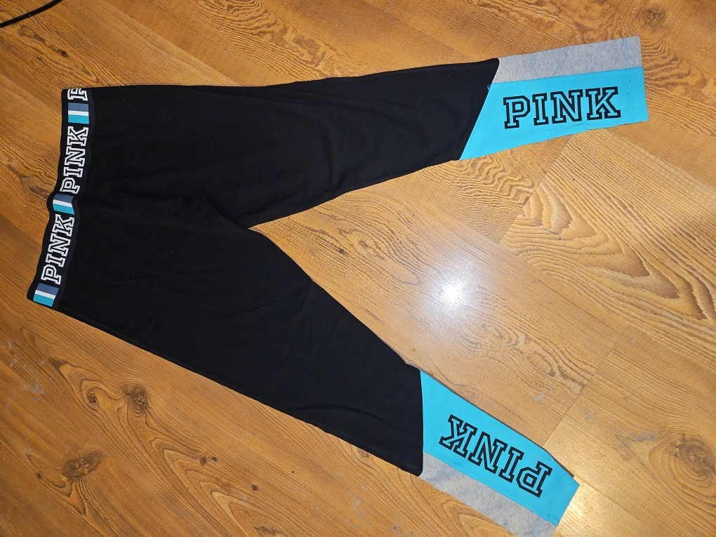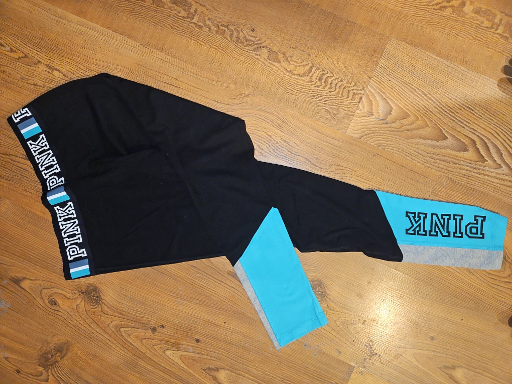 20Women's pink leggings. Size large. baby blue /aquar and black pattern. large size . Excellent condition. never worn