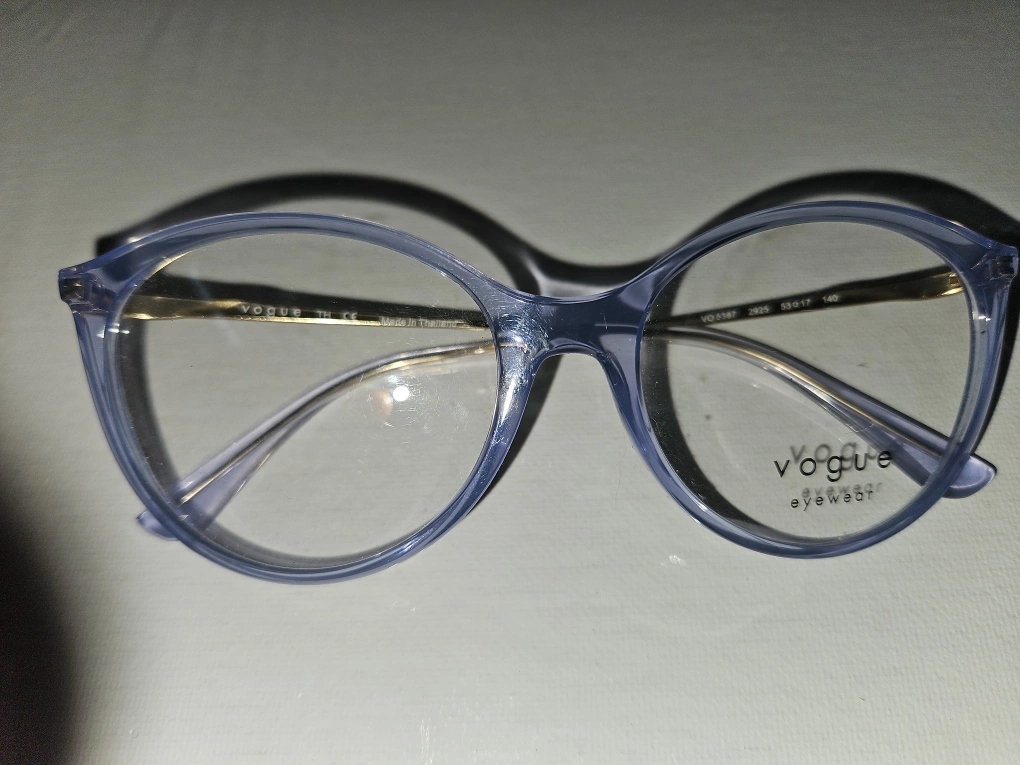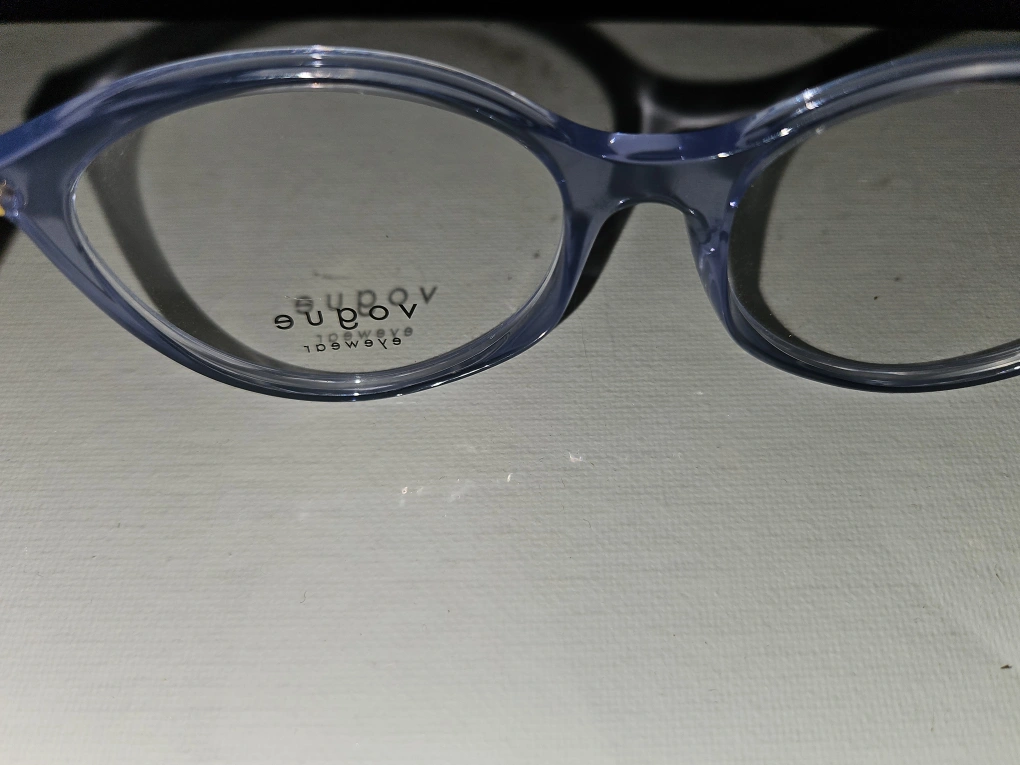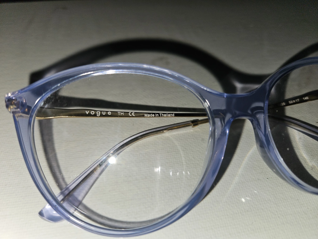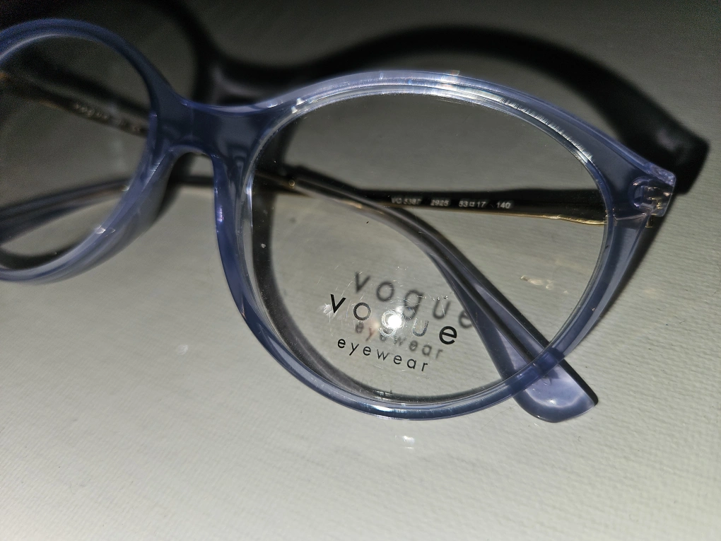 20Vogue eyewear glasses. Cat-eye style. Light blue translucent frames. Gold accents. Made in Thailand.Vogue glasses are no different, they stand out in the eyewear industry for their beautiful designs, elegance, and premium quality. Vogue glasses frames come in styles that span the decades. They are classic and timeless, and are a must-have for any fashion-forward individual.