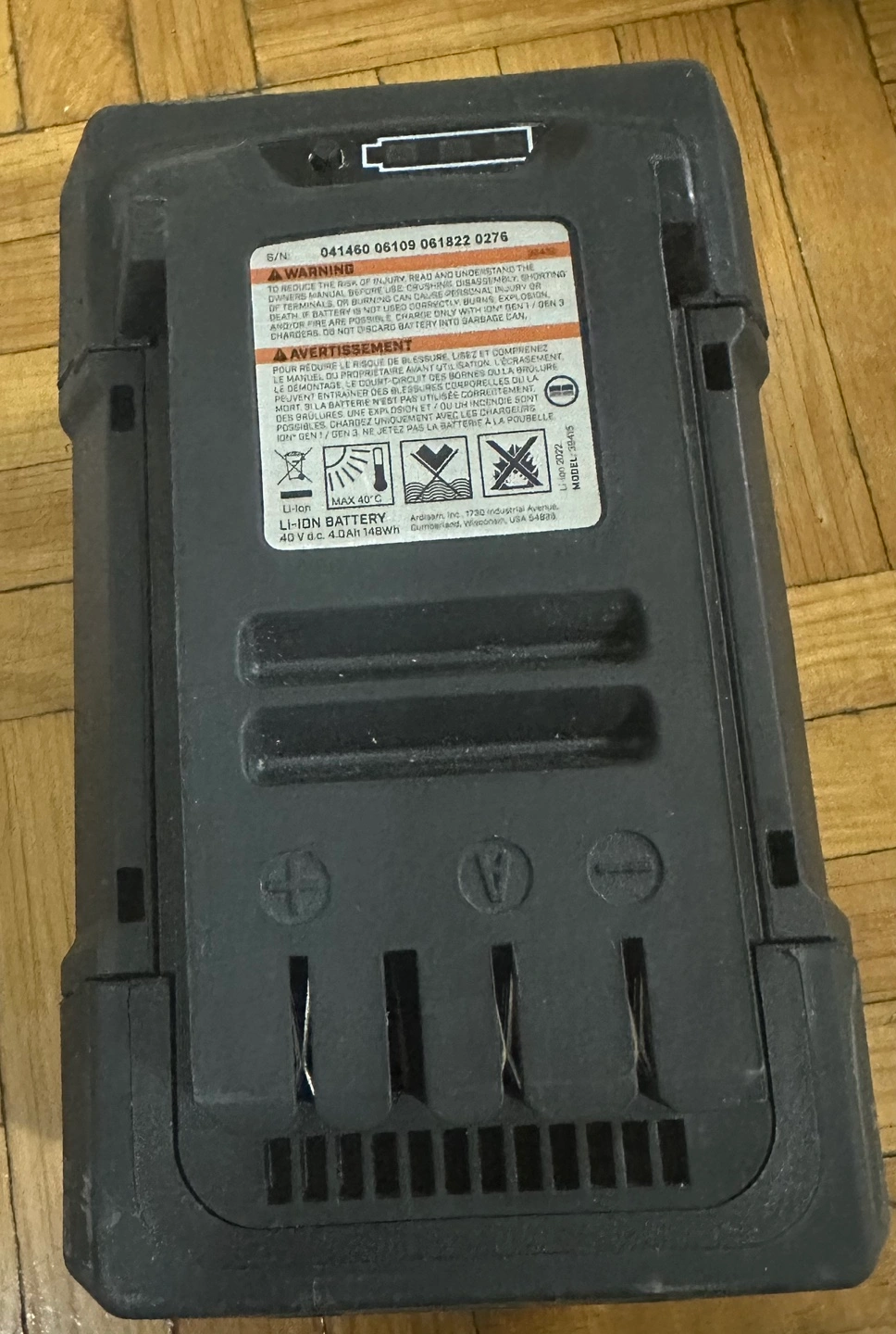 1540V lithium-ion battery. 4.0Ah. It’s new didn’t use it condition. Black plastic casing.