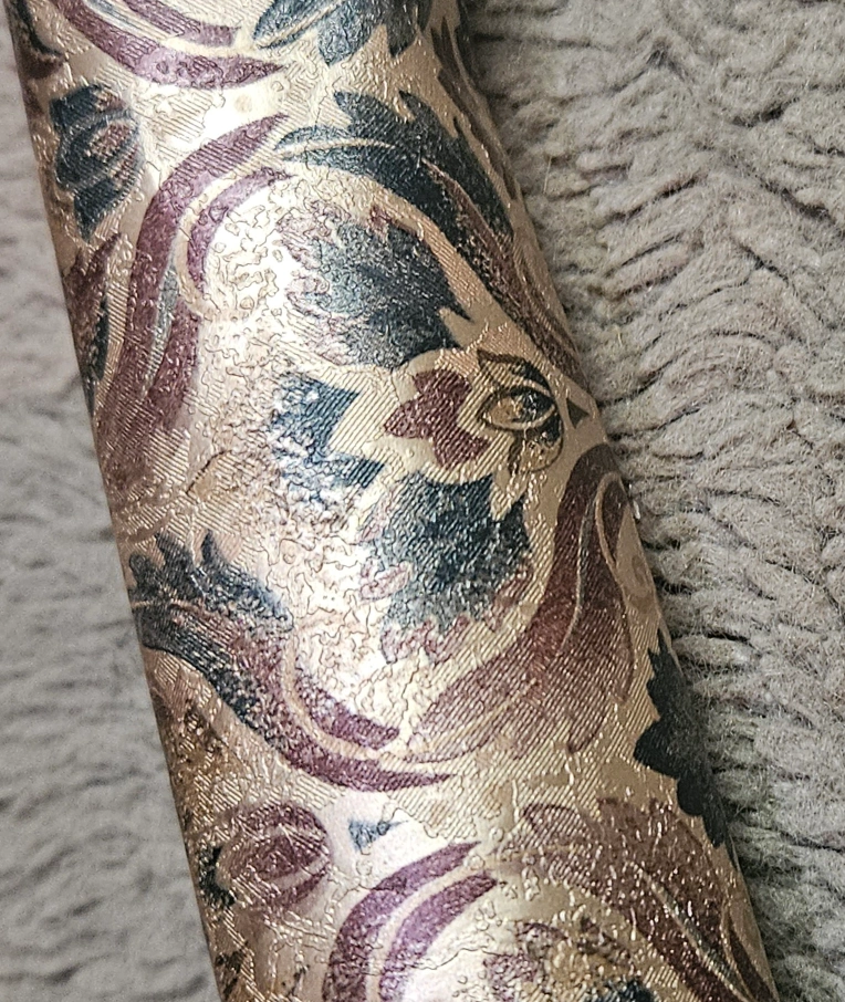 119Features a beautiful damask pattern in beige, burgundy, and teal. Elegant floral design. Perfect for a vintage or traditional decor project.