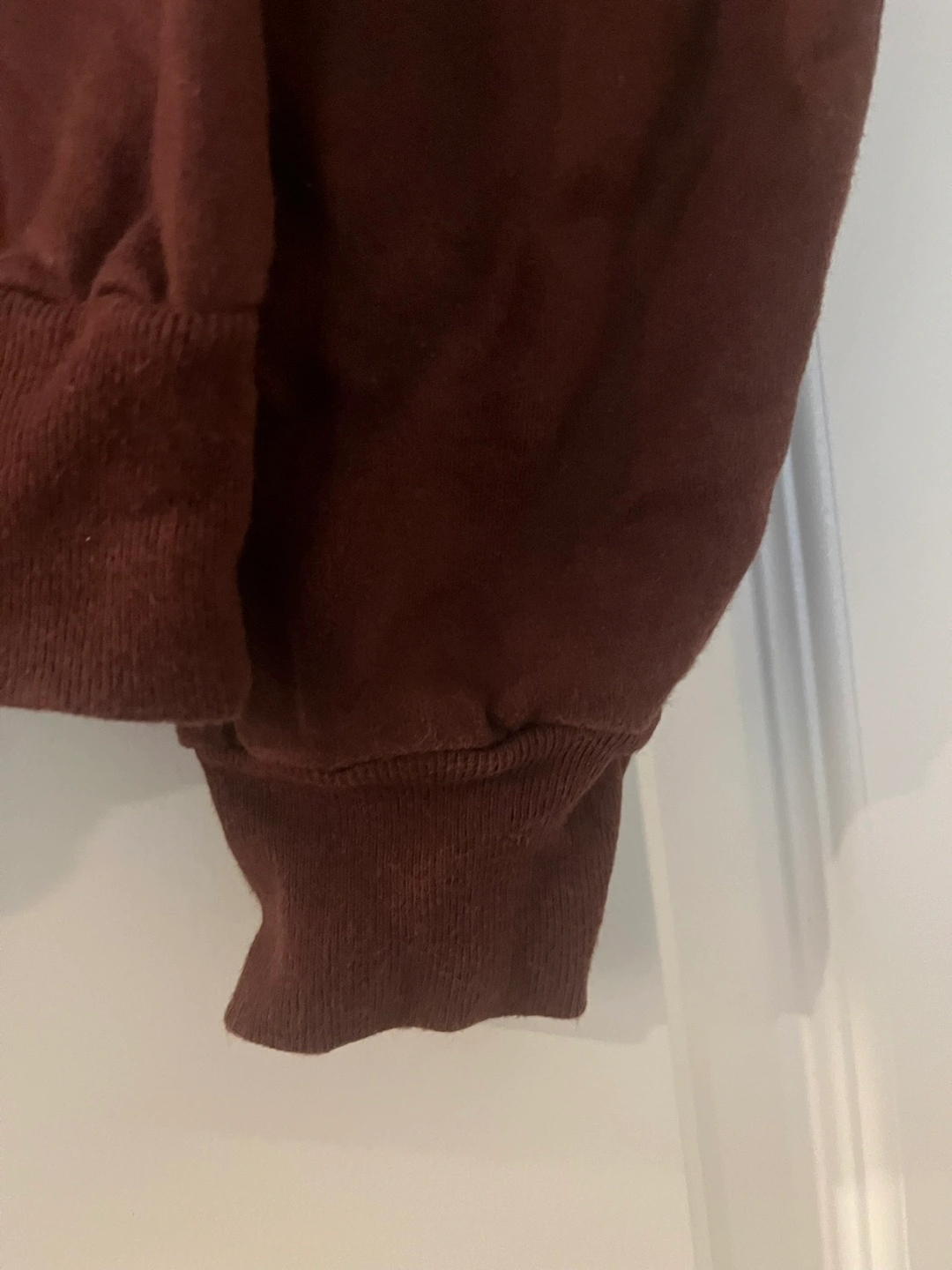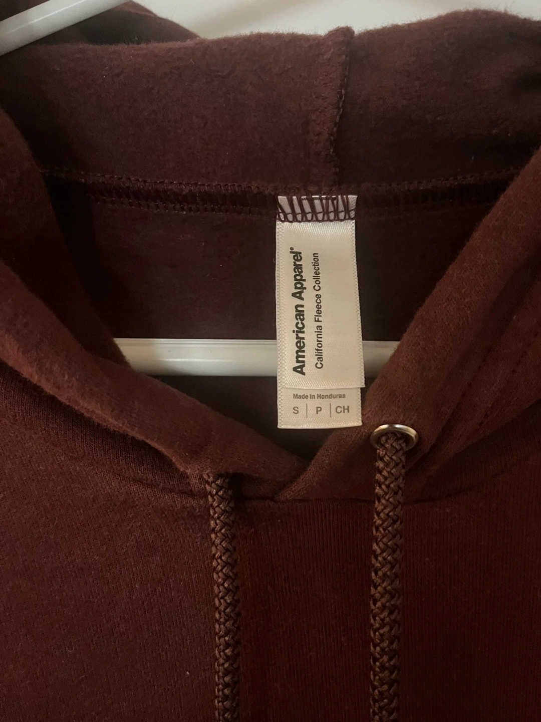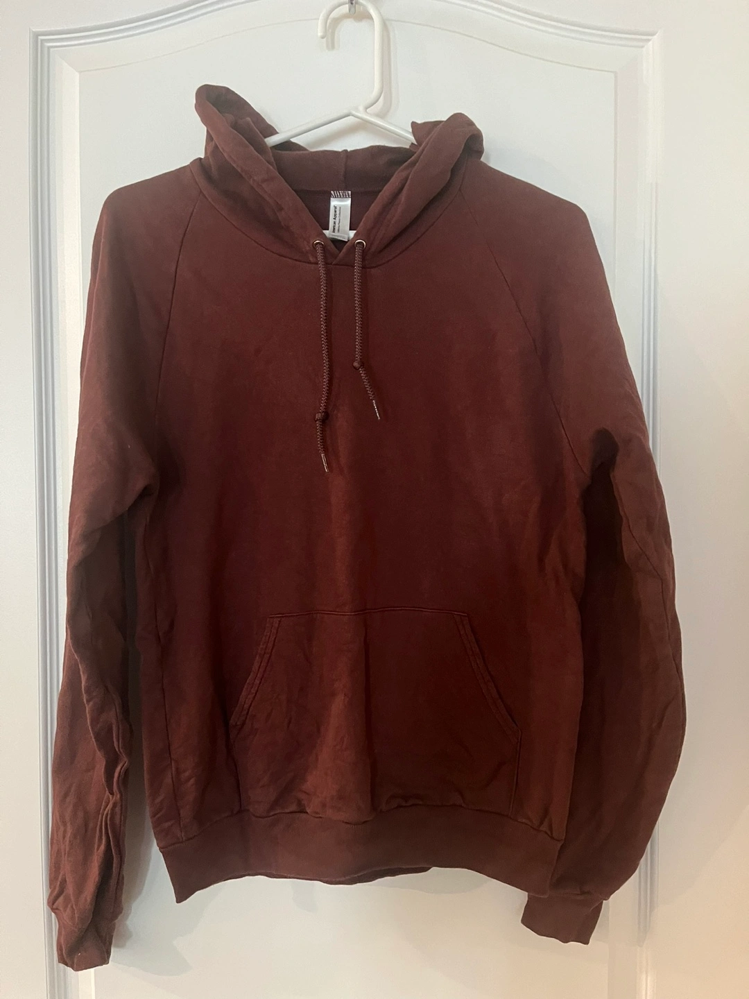 Maroon coloured hoodie. Long sleeves. Front pouch pocket. Drawstring hood. Size small. Good condition.