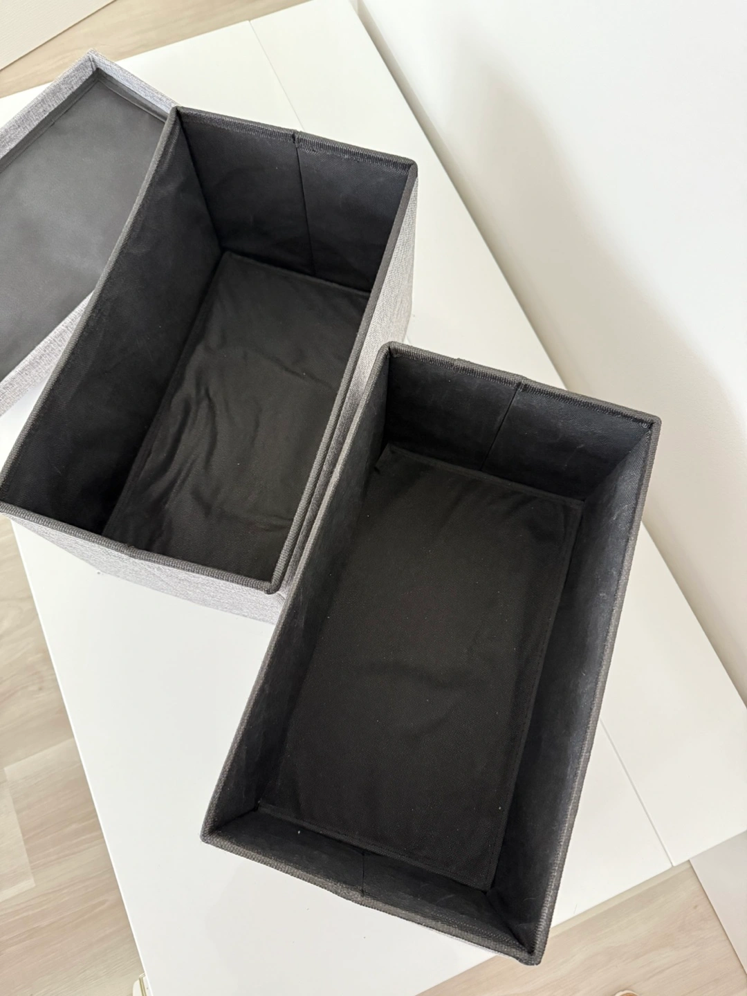 Two identical in size ottoman from Miniso, but the colour is a slightly different shade of grey. The cover for one of them is a bit damaged (you can tell from the first photo in comparison to the other ottoman + see second last photo for a close up), and a stain (see last photo) but itโs not that visible due to the colour.