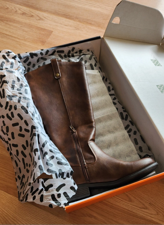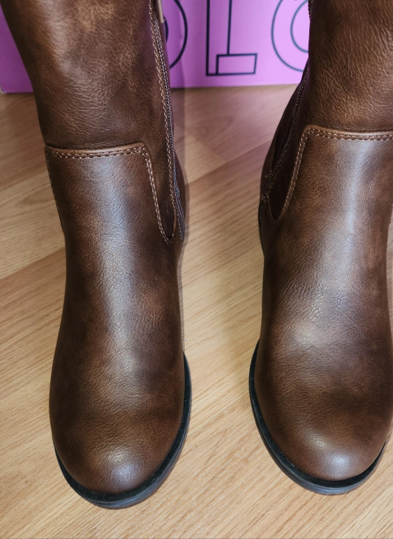 Brand new women's knee-high brown riding boots. Side zipper closure. Low block heel. Comes in original box.
