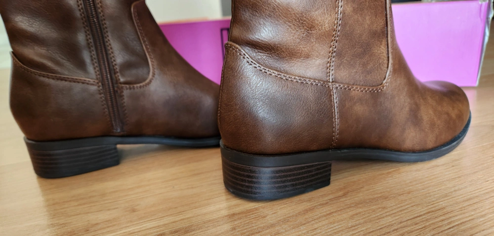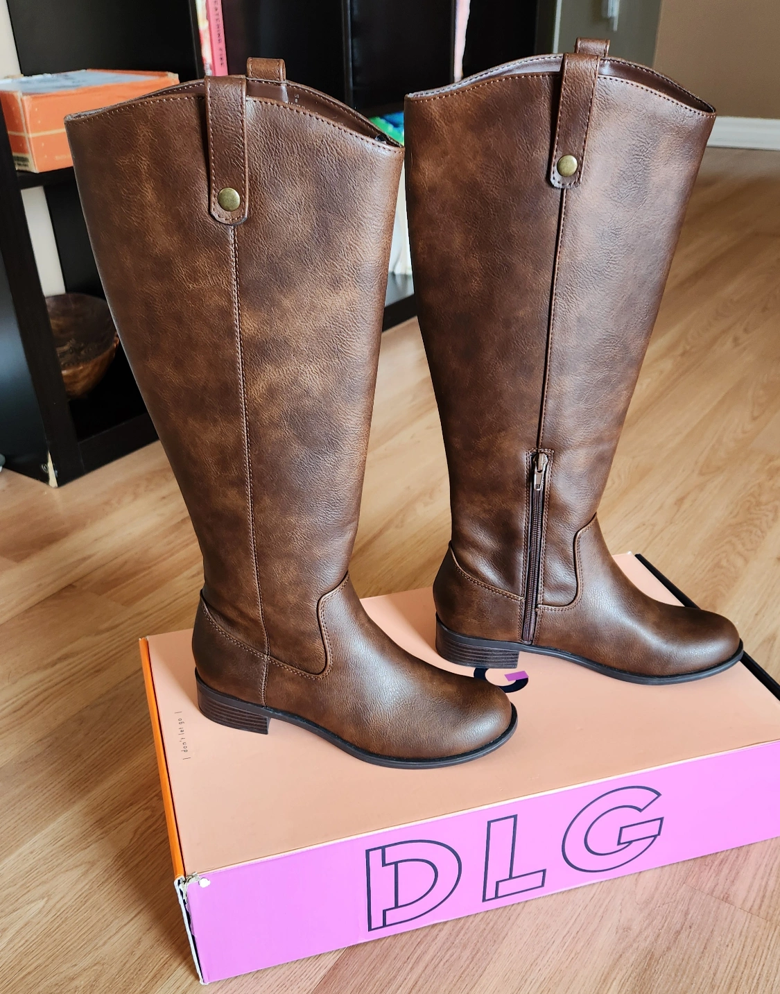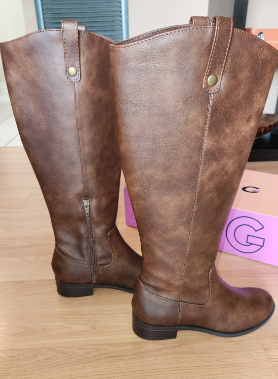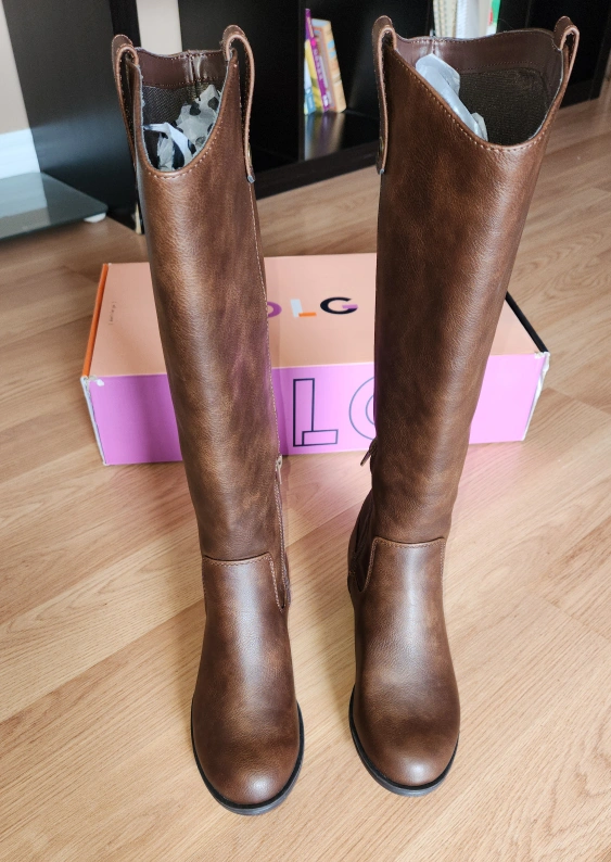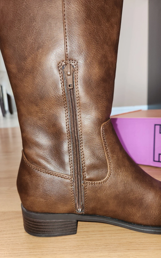 Brand new women's knee-high brown riding boots. Side zipper closure. Low block heel. Comes in original box.