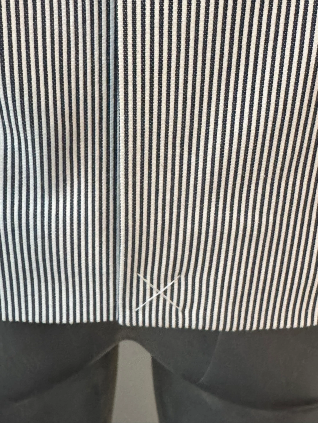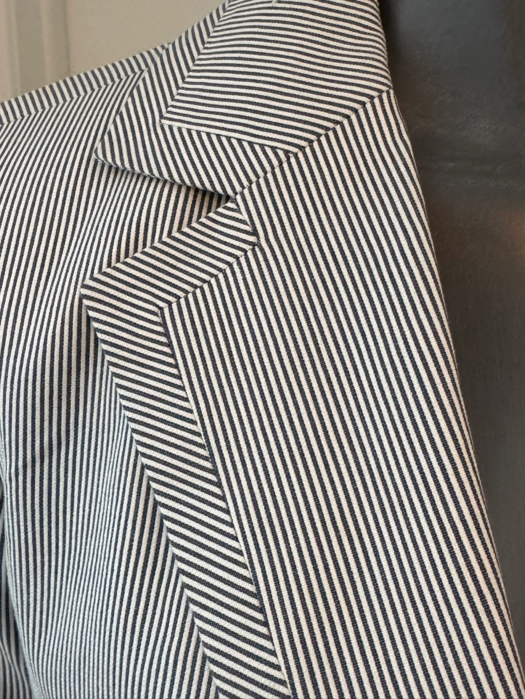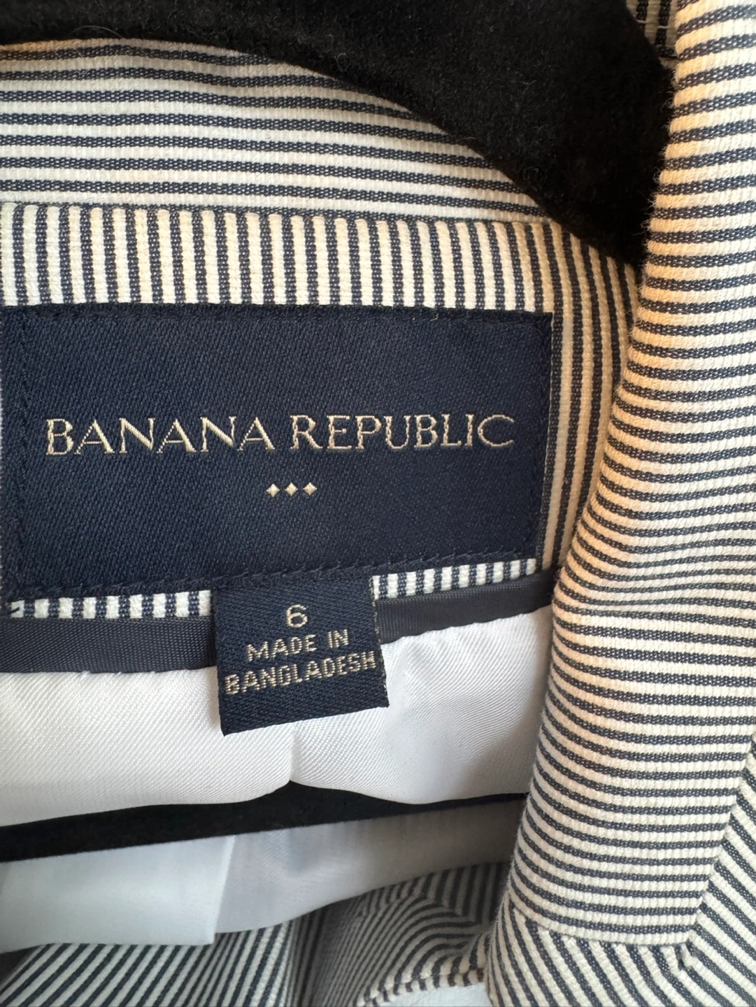 Neat, well-tailored women's blazer. Features a single button closure, notched lapel, and welt pockets. Classic striped pattern, suitable for work or casual wear. NWOT