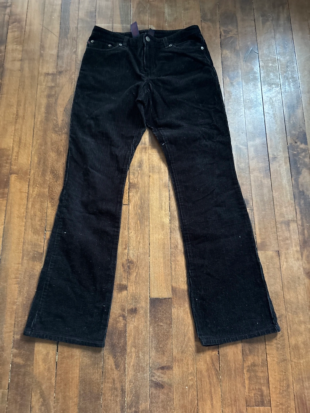 386Women's black corduroy pants. Bootcut style. 100% cotton. Machine washable. Size 6