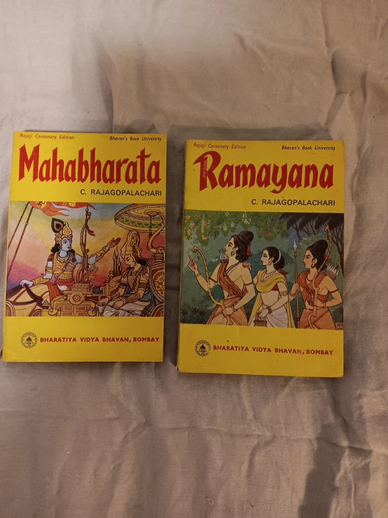 Set of two books: Mahabharata and Ramayana. Rajaji Centenary Edition. Bharatiya Vidya Bhavan, Bombay. Paperback. Vintage.