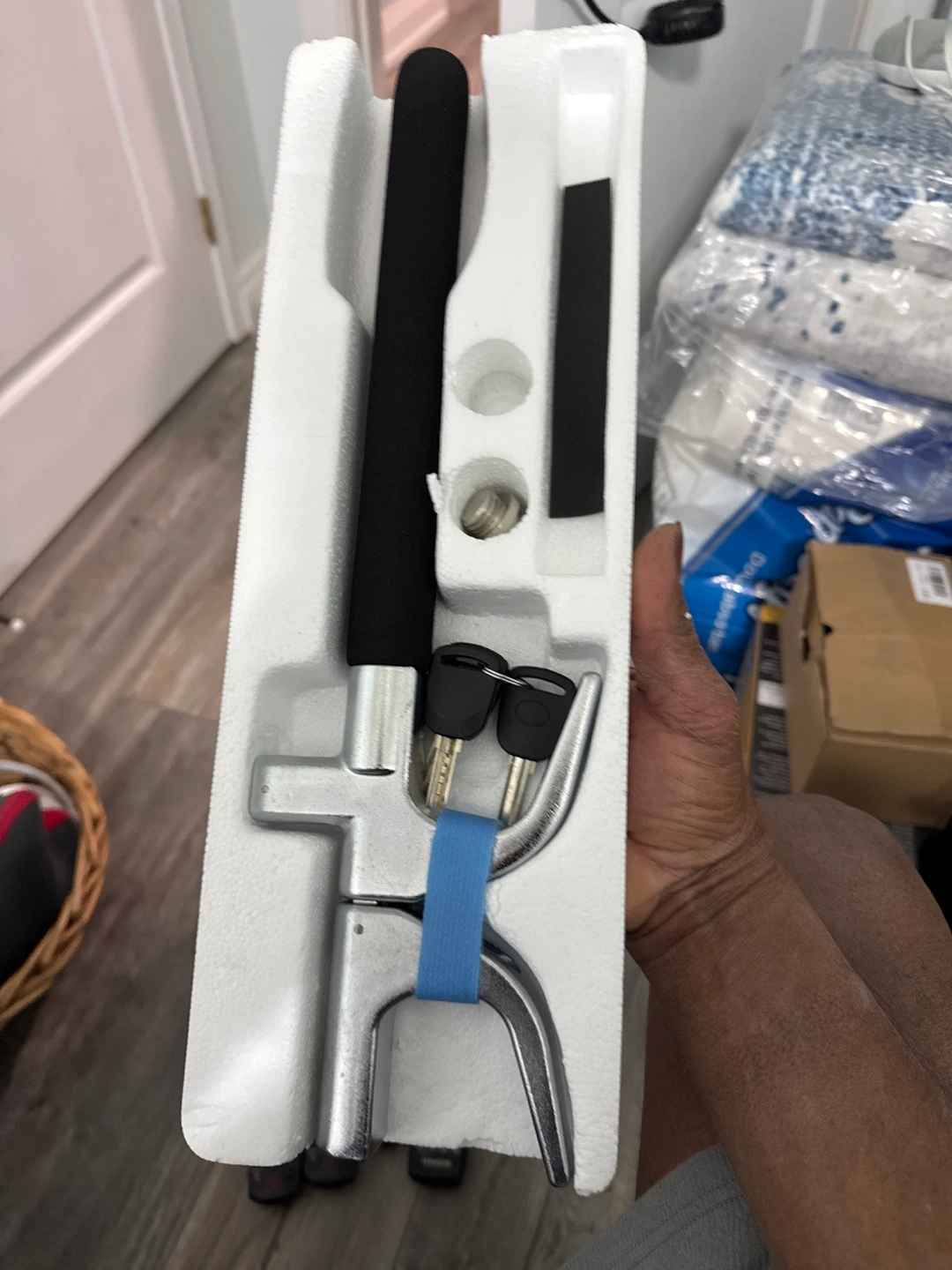 20Brand new steering wheel lock. Includes two keys and installation instructions. Never used.