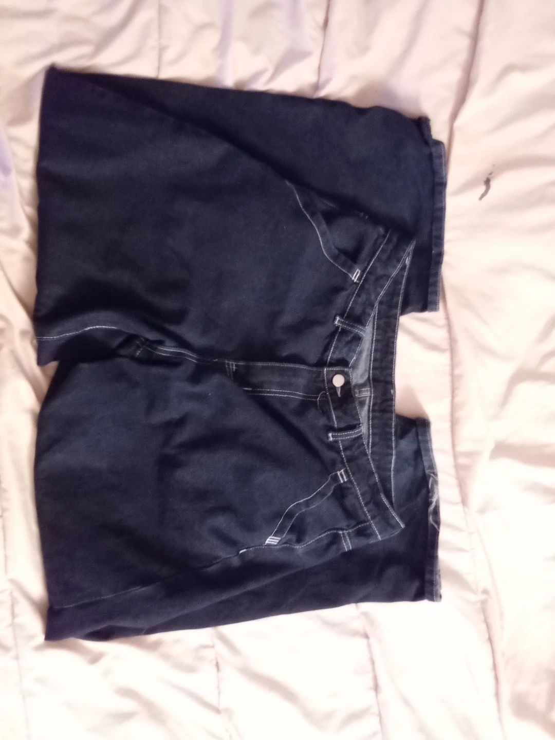 Dark wash denim jeans with white stitching detail. Wide leg fit. BW logo embroidered on back pocket.