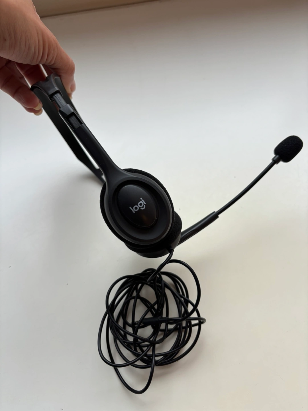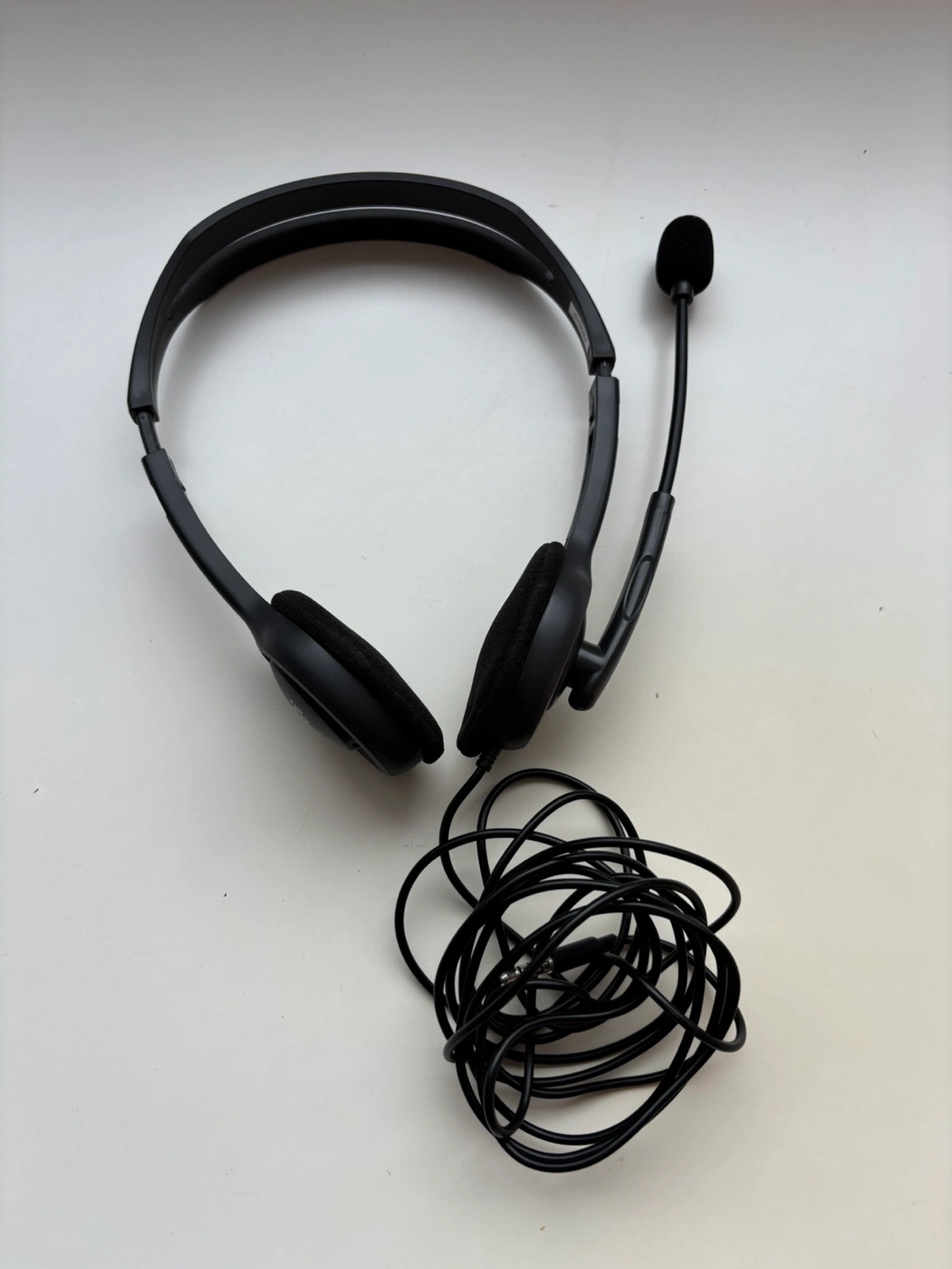 Wired headset. Black colour. Includes microphone. Good for calls or listening to audio.