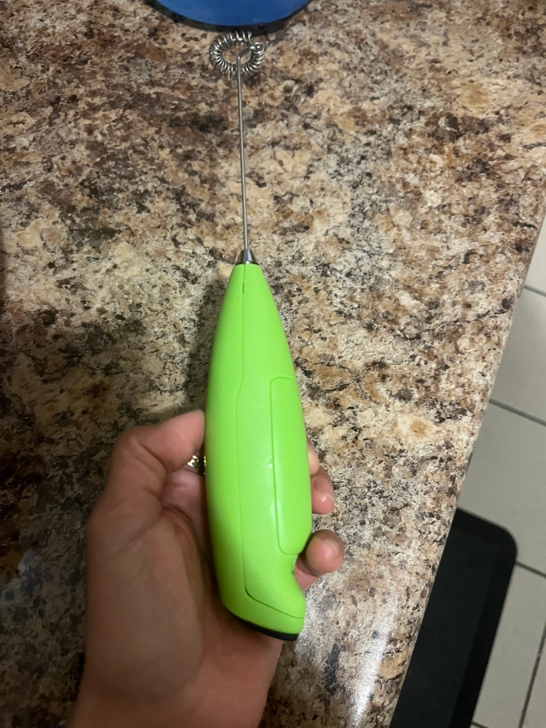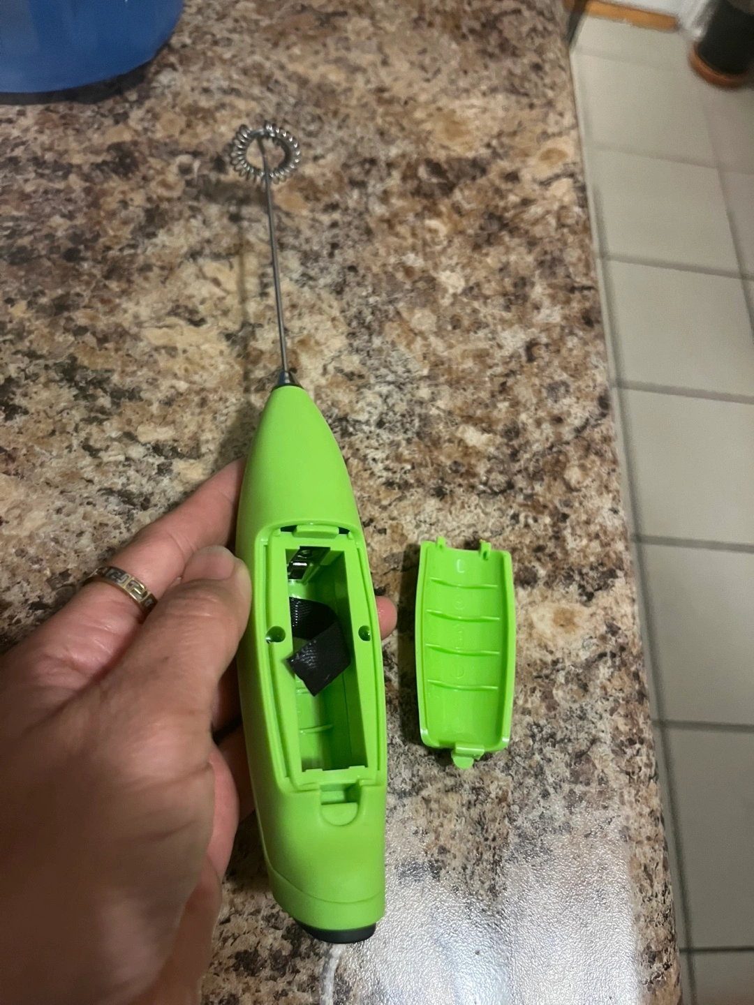 Battery operated, lime green colour. Compact and portable design. Great for coffee, hot chocolate, etc. Includes whisk attachment. Used condition.