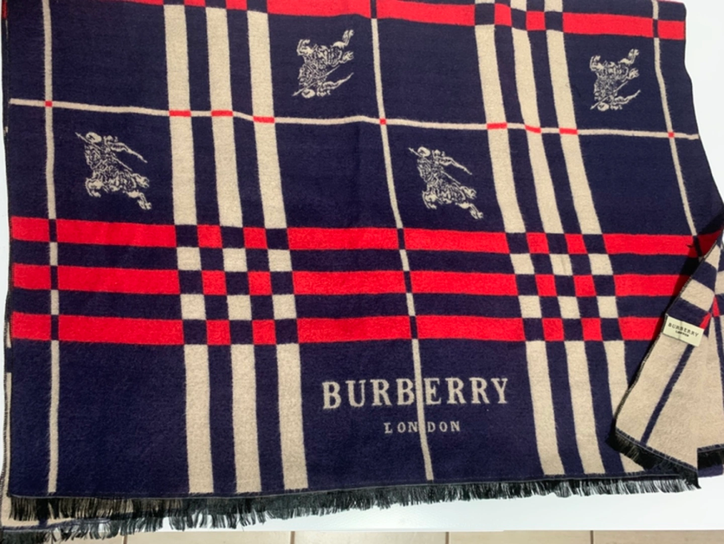 Authentic Beautiful Burberry London scarf. Features a classic check pattern with iconic knight motif. 65% cashmere, 35% silk.