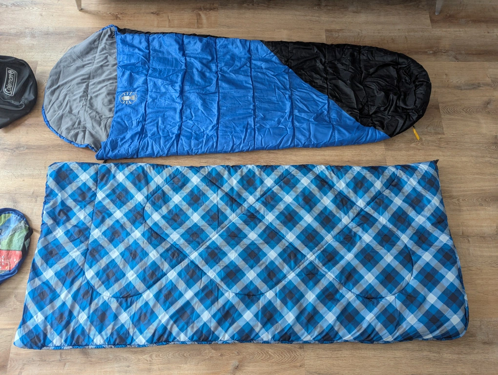 Get ready for your next camping adventure with these sleeping bags, designed to keep you cozy! They come with convenient stuff sacks for easy packing and storage. They are in very good conditions, ready for more outdoor escapades.
