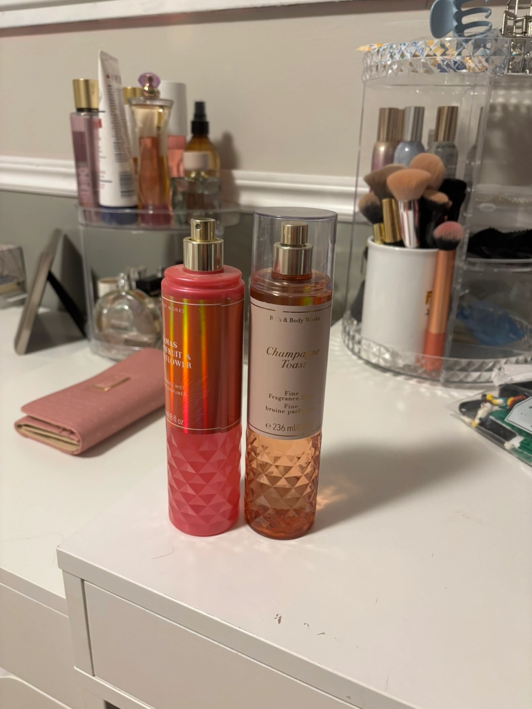 Two lightly used fragrance mists. One is Champagne Toast and the other is Fruit & Flower. Both are 236 ml.