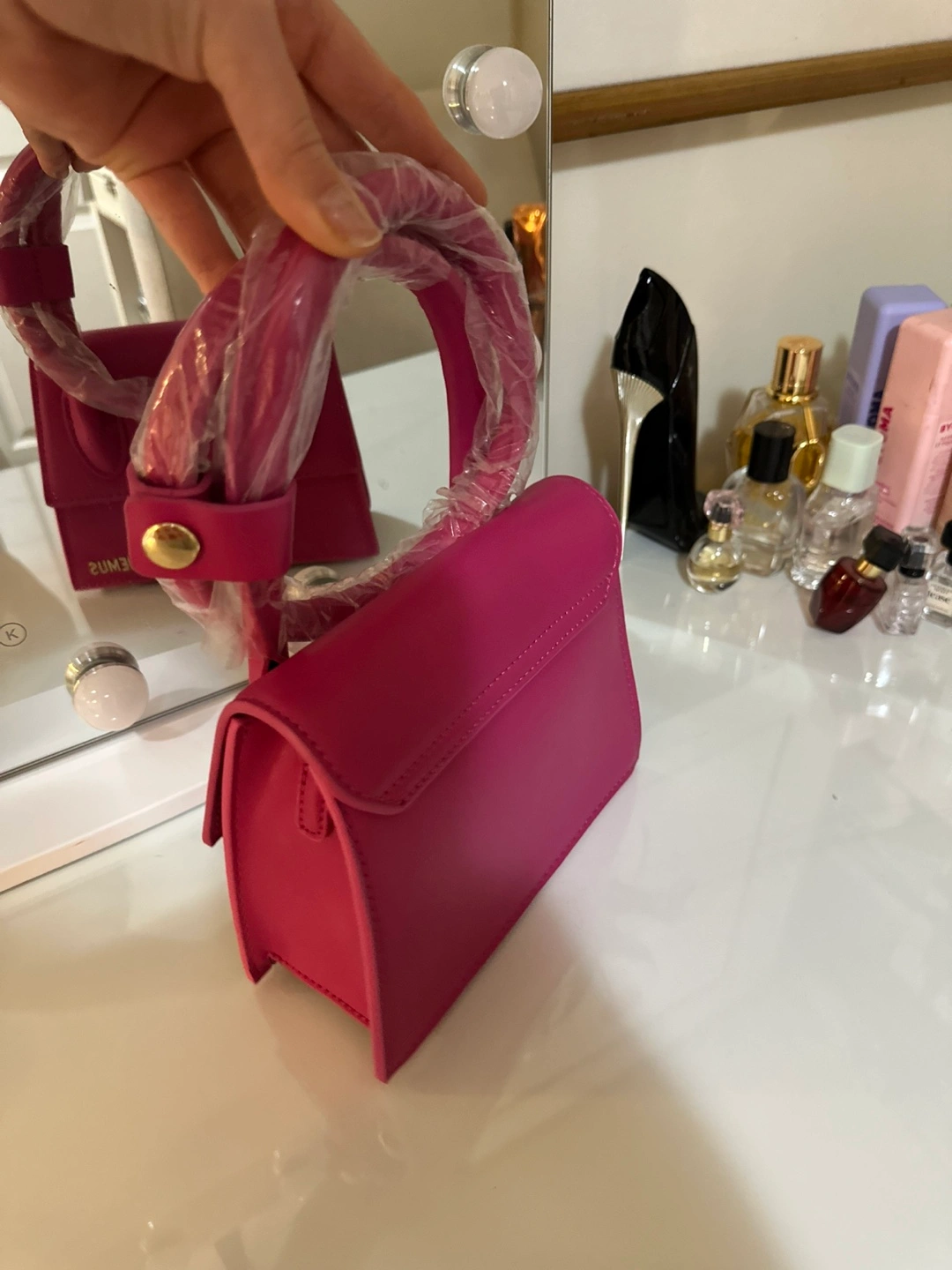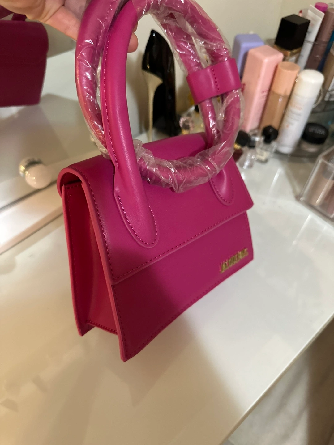 Adorable bag. Pink leather. Top handles. Excellent condition. Brand new.