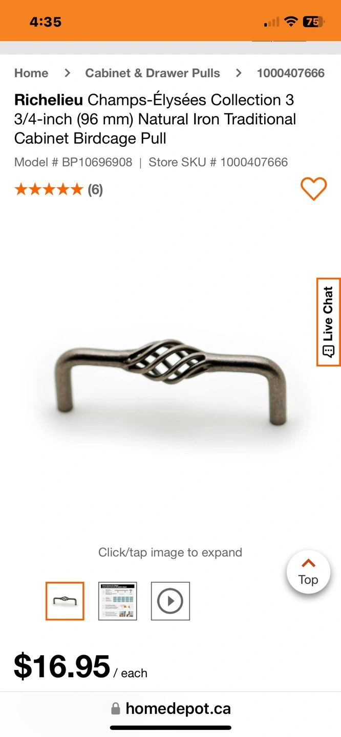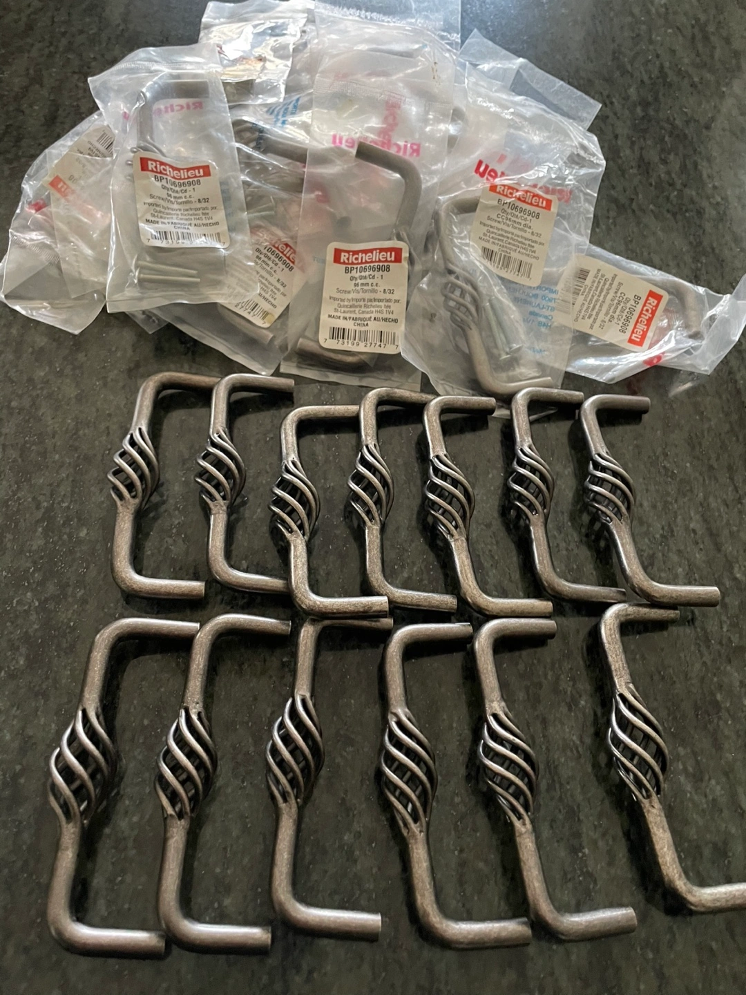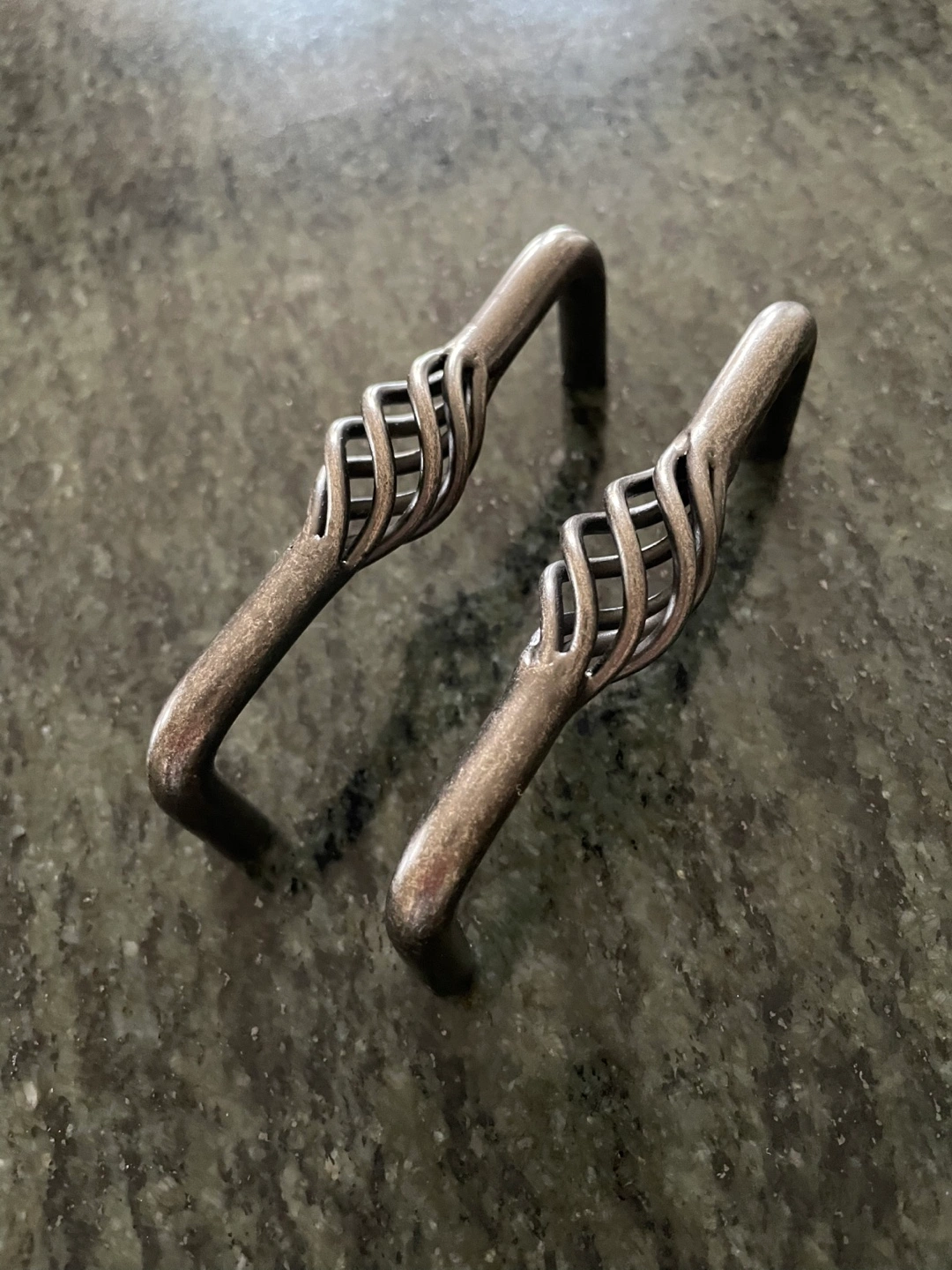 Beautiful natural iron โRichelieuโ cabinet handles.