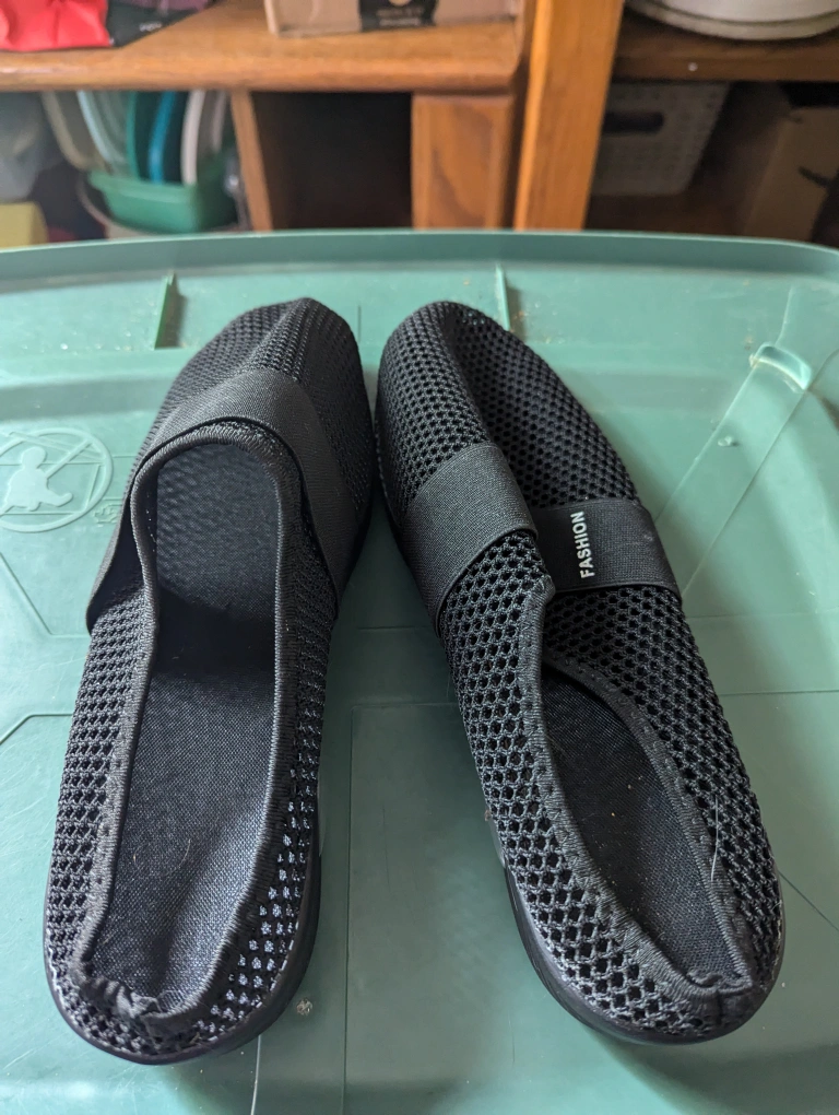 Buy & SellWomen's Black Mesh Slip-On ShoesWomen's Black Mesh Slip-On Shoes$10Pair of black slip-on shoes. Mesh upper, comfortable sole. Good for casual wear. ConditionNewSize9 1/2 or 10WHERE TO MEETGaltView MapSELLERLoriLittles Corners100 reviews0 chats·0 favorites·23 views