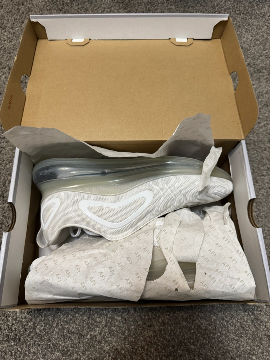 Nike Air Max 720 running shoes. White colourway. Comes in original box. Lightweight and comfortable design. Perfect for everyday wear or workouts.