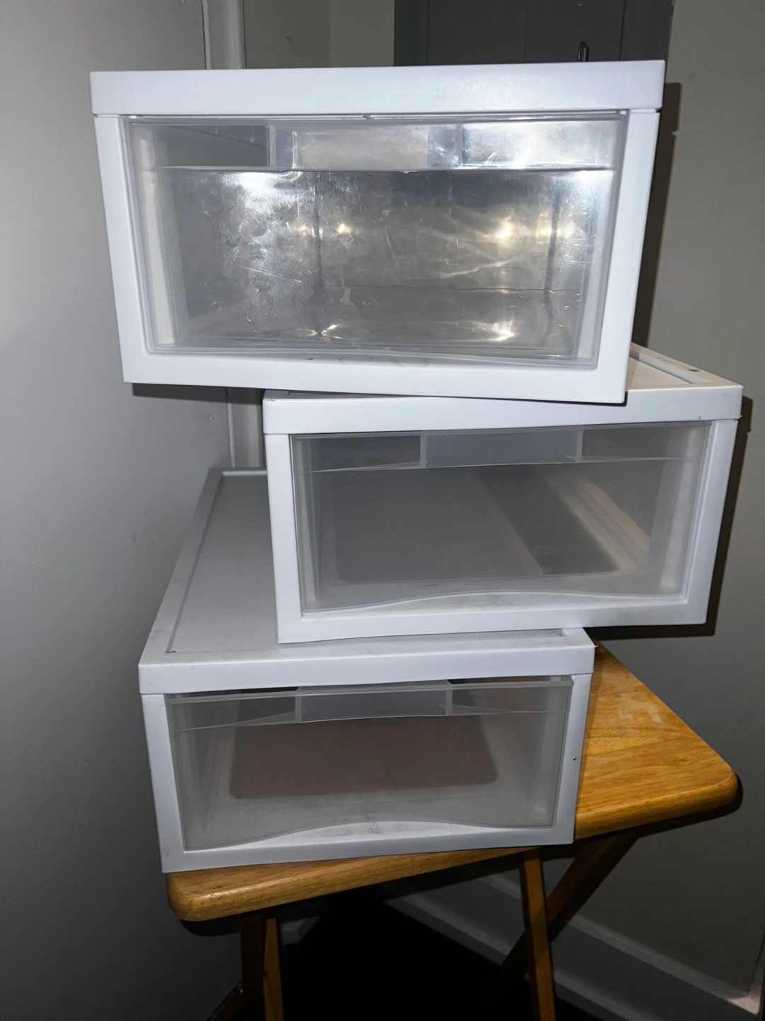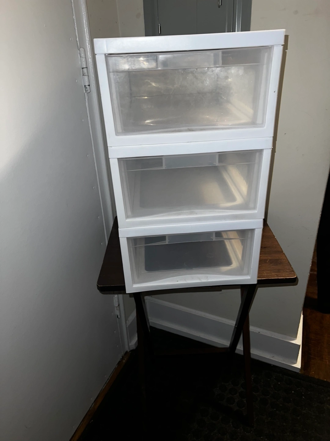 If you see the ad it’s available Great condition Pet and smoke free home 6$ each 3 available (as per picture) Width: 12” Depth: 17” Height: 7” Pick up : Bathurst & Glencarin