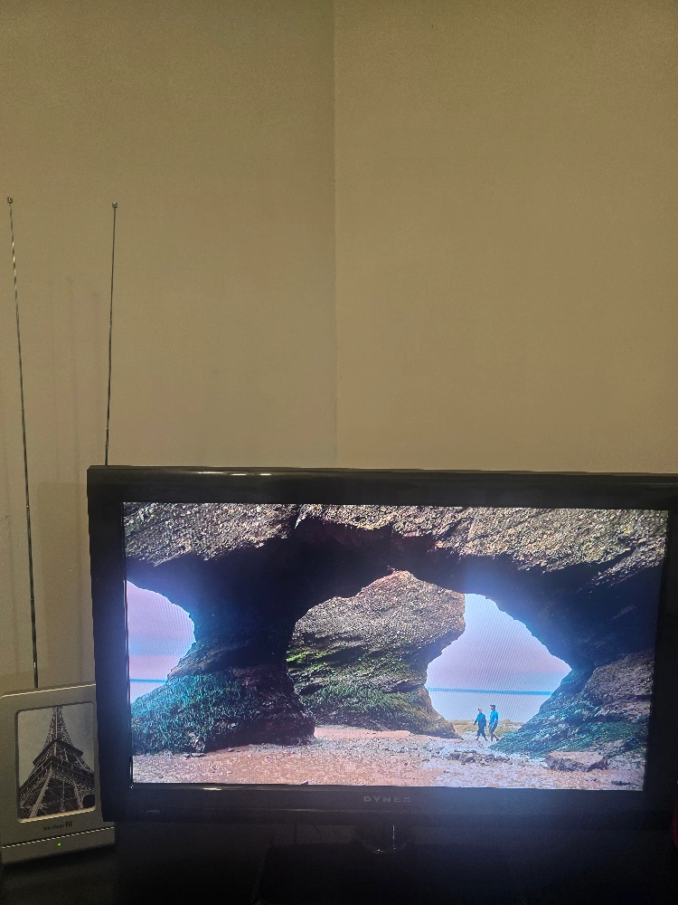 Dynex flat-screen television. Includes a Digiwave amplified indoor HDTV antenna. Great for smaller spaces. Antenna is easy to install.