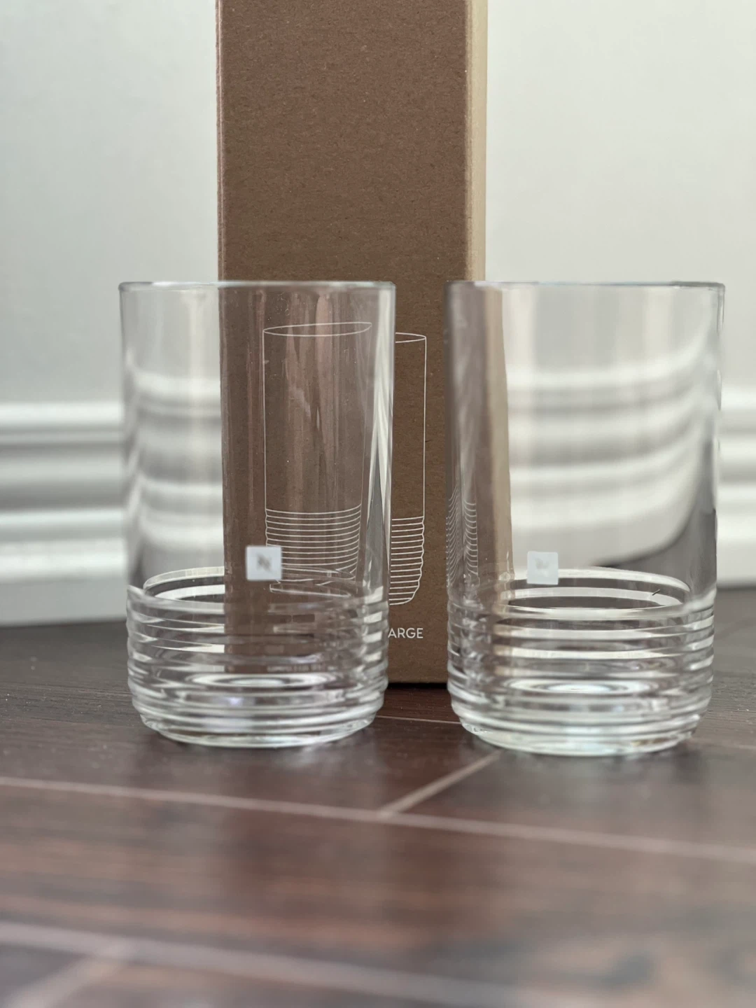 New in box, never used. Set of 2 glasses - 480 ml. Crafted with tempered glass.