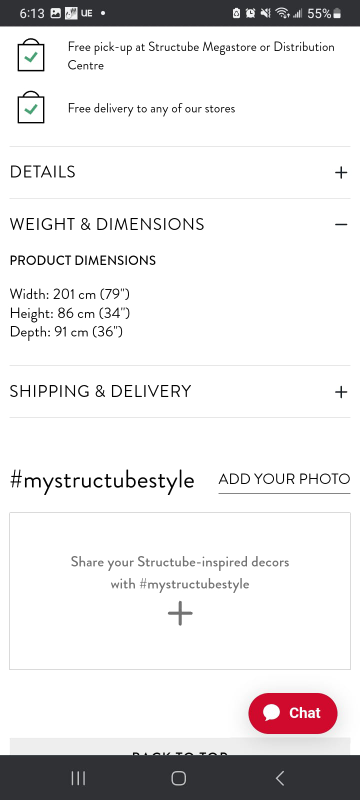 - DimensionsWidth: 201 cm (79") Height: 86 cm (34") Depth: 91