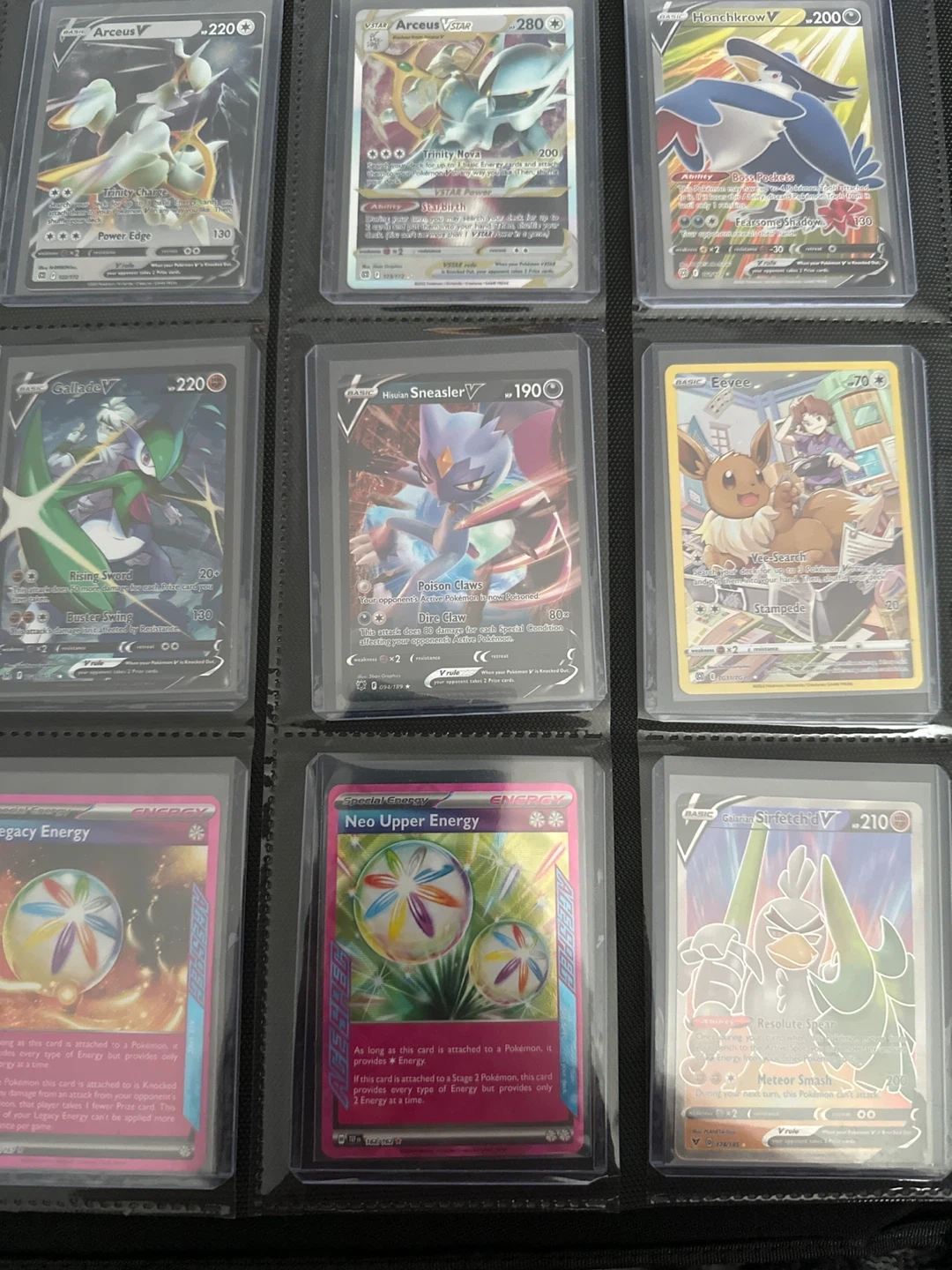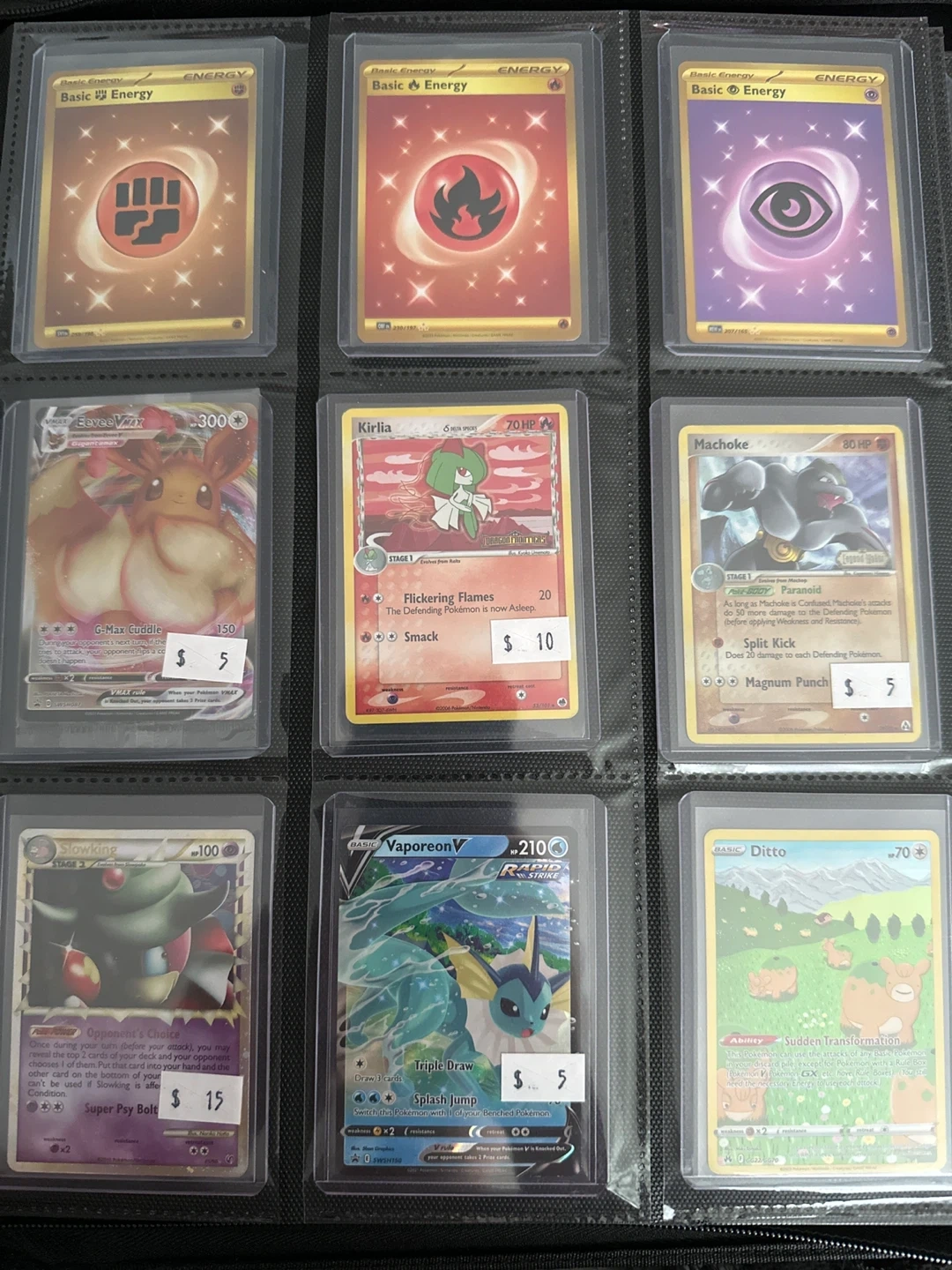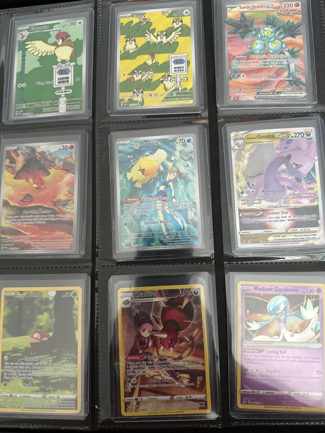 Assorted Pokémon cards all near mint, sleeved and top loaded. Will sell individually or in groups depending on wants. Selling at 80-90% of current market value. Will trade at equal value. I’ll take better quality pics of cards you’re interested in.