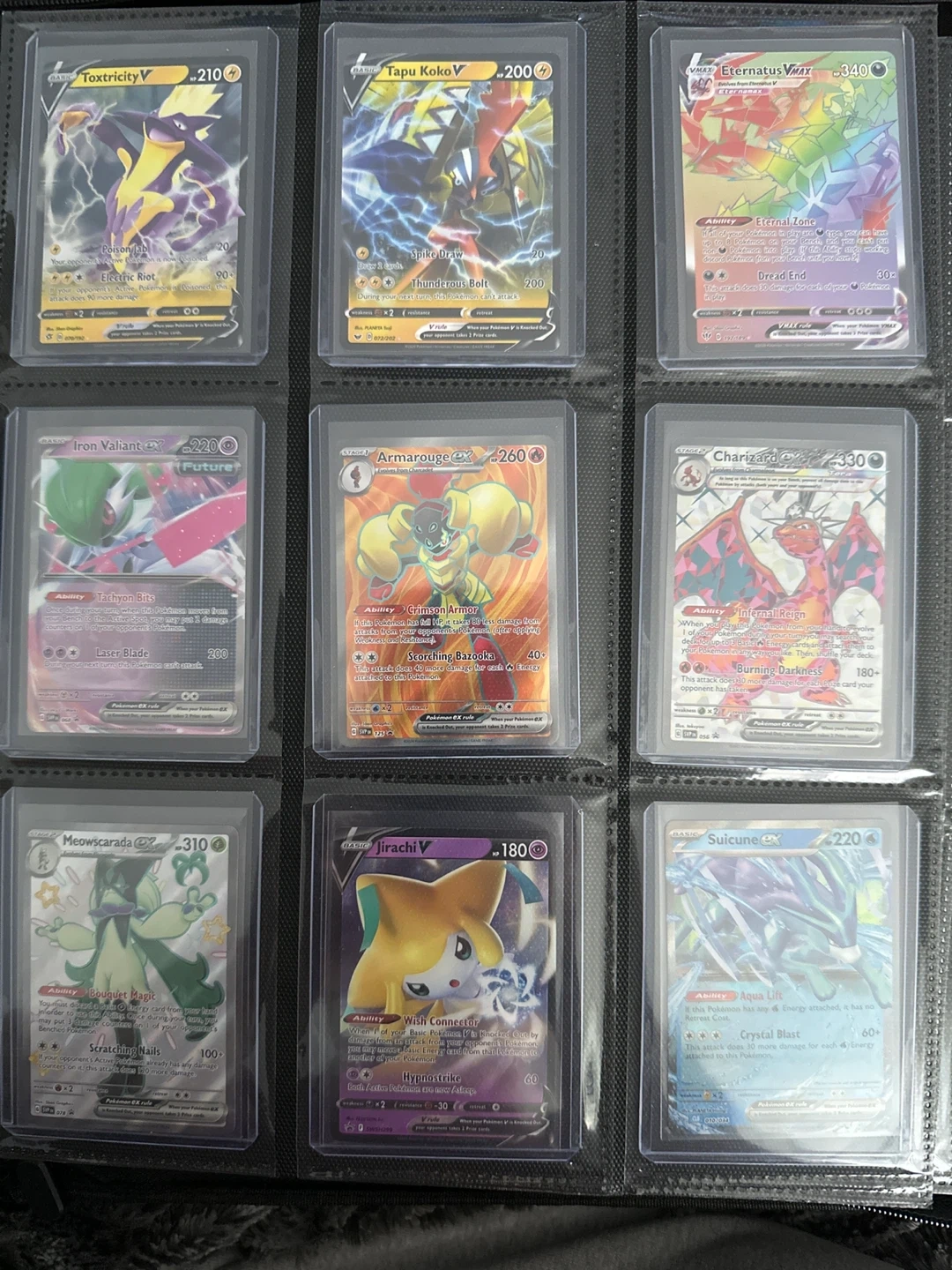 Assorted Pokémon cards all near mint, sleeved and top loaded. Will sell individually or in groups depending on wants. Selling at 80-90% of current market value. Will trade at equal value. I’ll take better quality pics of cards you’re interested in.