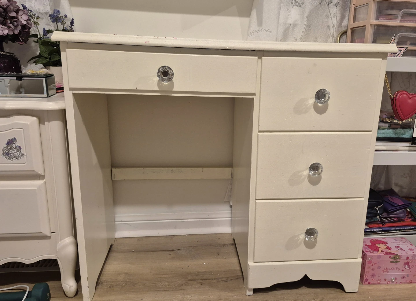 White Vanity Desk with Crystal Knobs