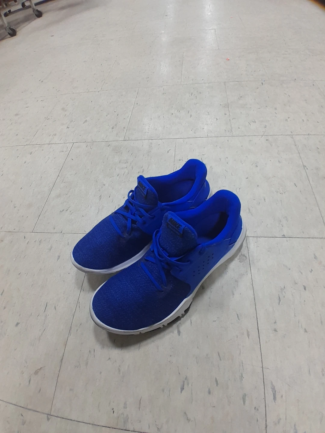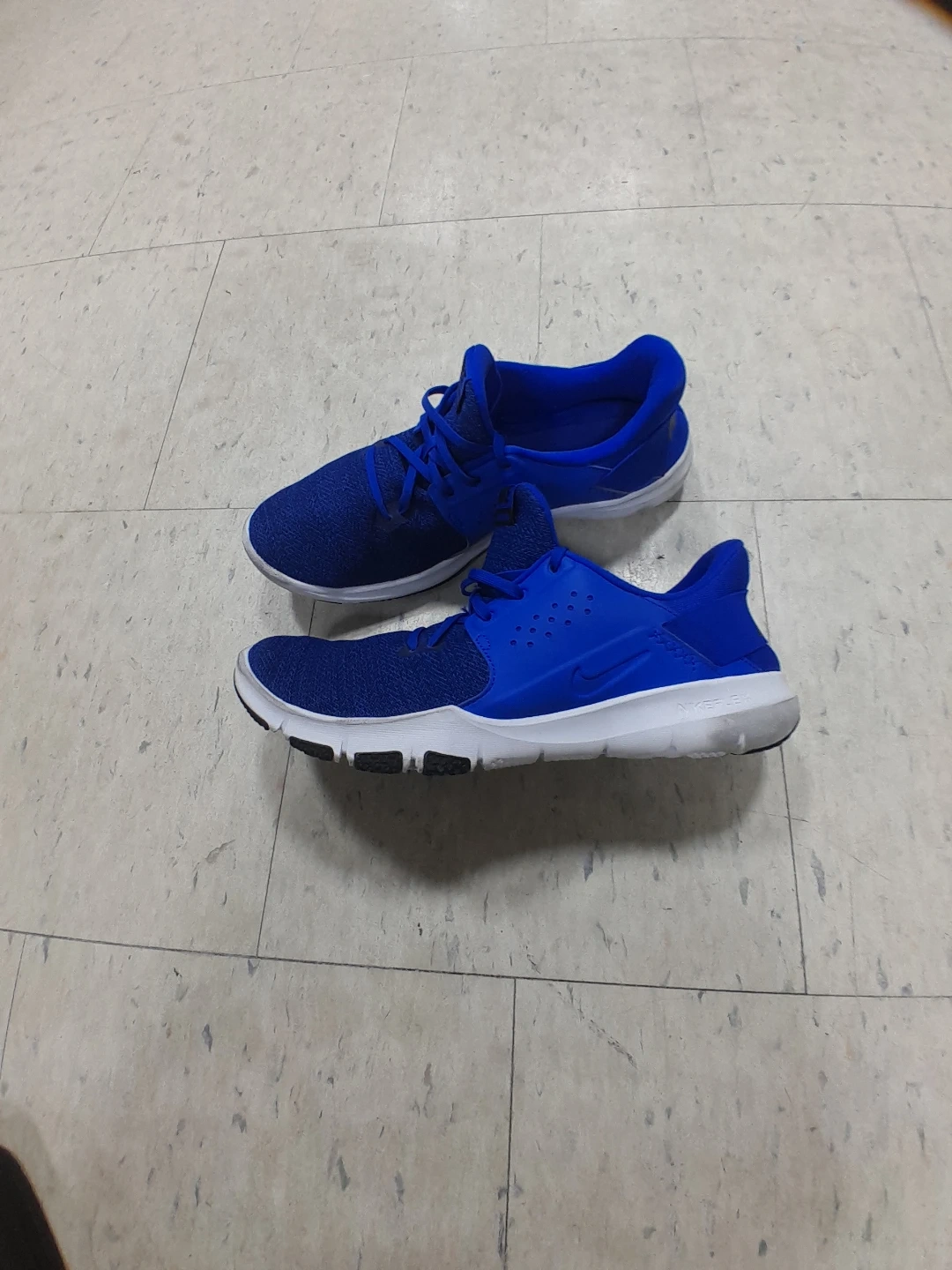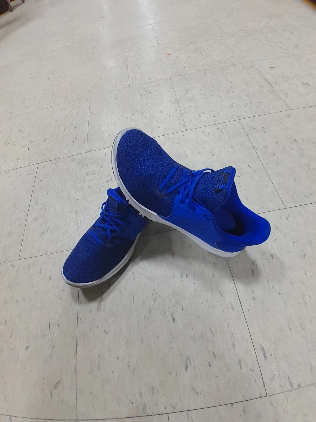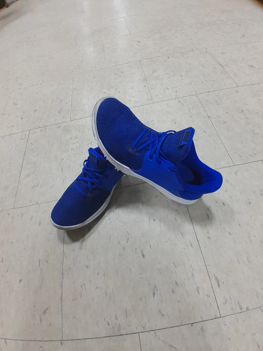 Nike athletic shoes in a vibrant blue colour. They're designed for comfort and performance. The shoes feature a breathable mesh upper and a supportive sole Men's Size 11