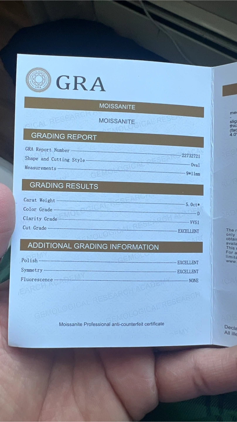 Buy & SellGRA Moissanite Oval Cut Engagement RingGRA Moissanite Oval Cut Engagement Ring$350Oval cut moissanite stone, 9*11mm measurements. Color grade D and VVS1 clarity. This ring comes with a GRA grading report and original box.ConditionNewSize6:1/2BrandGRAWHERE TO MEETCheck LocationView MapSELLERverifiedElmerWest Babylon600 reviews0 chats·0 favorites·2 viewsSEND CHAT TO SELLERHi Elmer! I’m interested in your listing.Hi Elmer! I’m interested in your listing.Get the Karrot app to chatSign In to chat