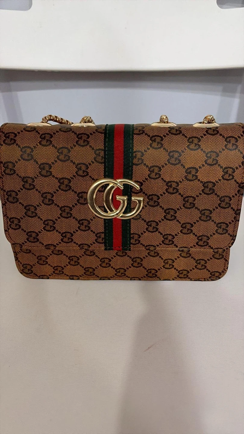 Stylish Gucci shoulder bag in classic GG monogram canvas. Features the iconic green and red stripe detail with gold-tone hardware. A timeless accessory for any fashion enthusiast!