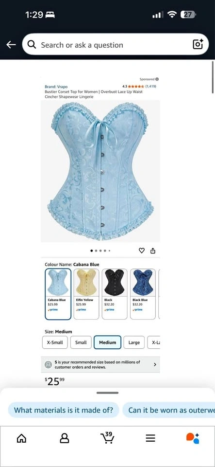 NEW Pastel Blue Corset Top Medium