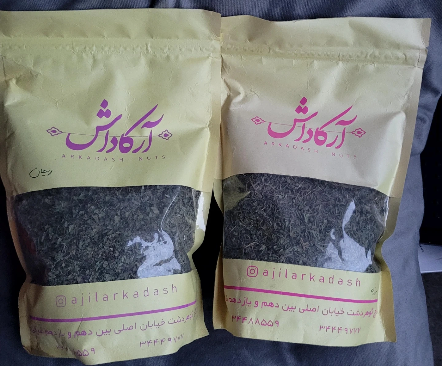 Two bags of Arkdash Nuts dried tarragon (Rehan). This herb is commonly used in Middle Eastern cuisine. It's a flavourful addition to various dishes and drinks.