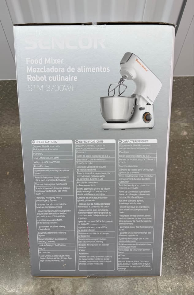 Sencor STM3700WH Multi-Function Stand Mixer in great condition. Powerful 10-speed motor with an all-in-one kitchen system that replaces multiple appliances.
