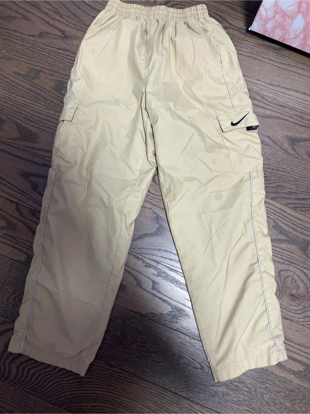Buy & SellNike Cargo Pants Size LNike Cargo Pants Size L$8Similar sold between $20 Tan Nike cargo pants with elastic waistband and drawstring. Made in the USA. Two cargo pockets on the legs.ConditionGoodSizelargeBrandNikeWHERE TO MEETCanadian TireView MapSELLERverifiedVictoriaScarborough Town Centre1567 reviews2 chats·0 favorites·25 viewsSEND CHAT TO SELLERHi Victoria! I’m interested in your listing.Hi Victoria! I’m interested in your listing.Get the Karrot app to chatSign In to chat