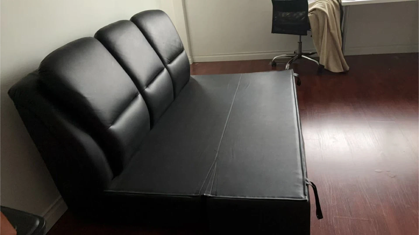 Black Leather 3-Seater Sofa Bed