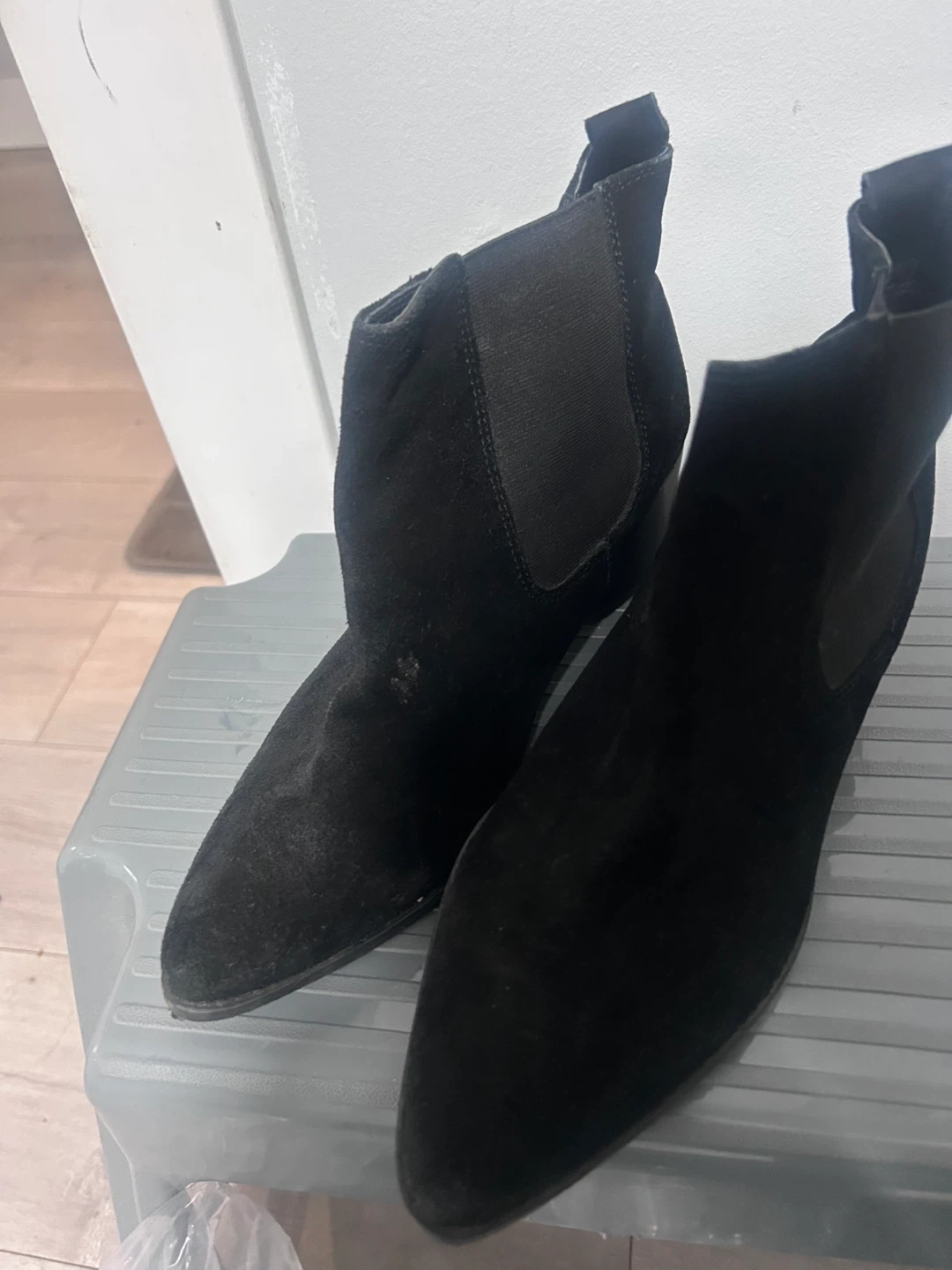 Carlton London ankle boots made of black suede. Features elastic side panels for easy wear. Real leather sole.