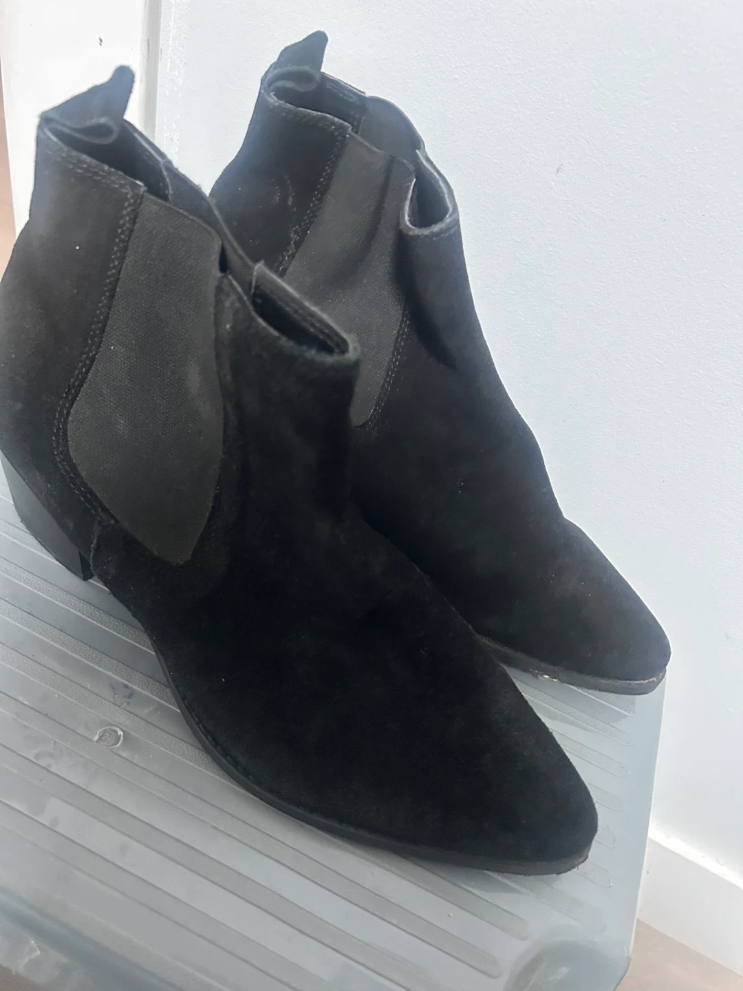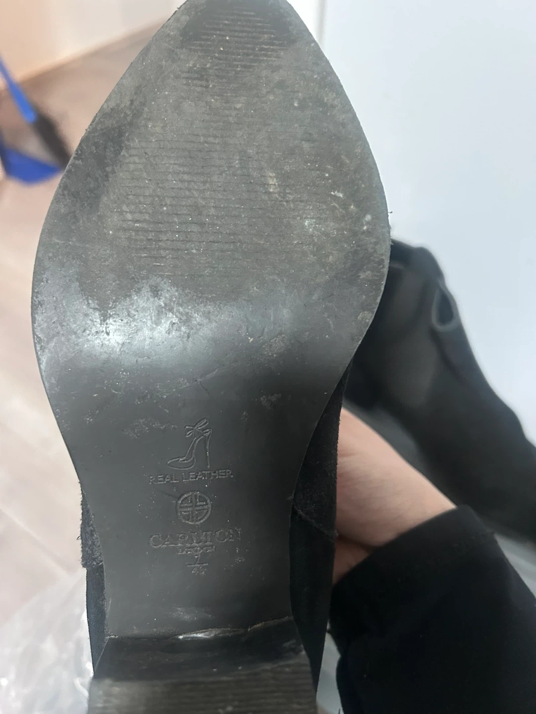 Carlton London ankle boots made of black suede. Features elastic side panels for easy wear. Real leather sole.