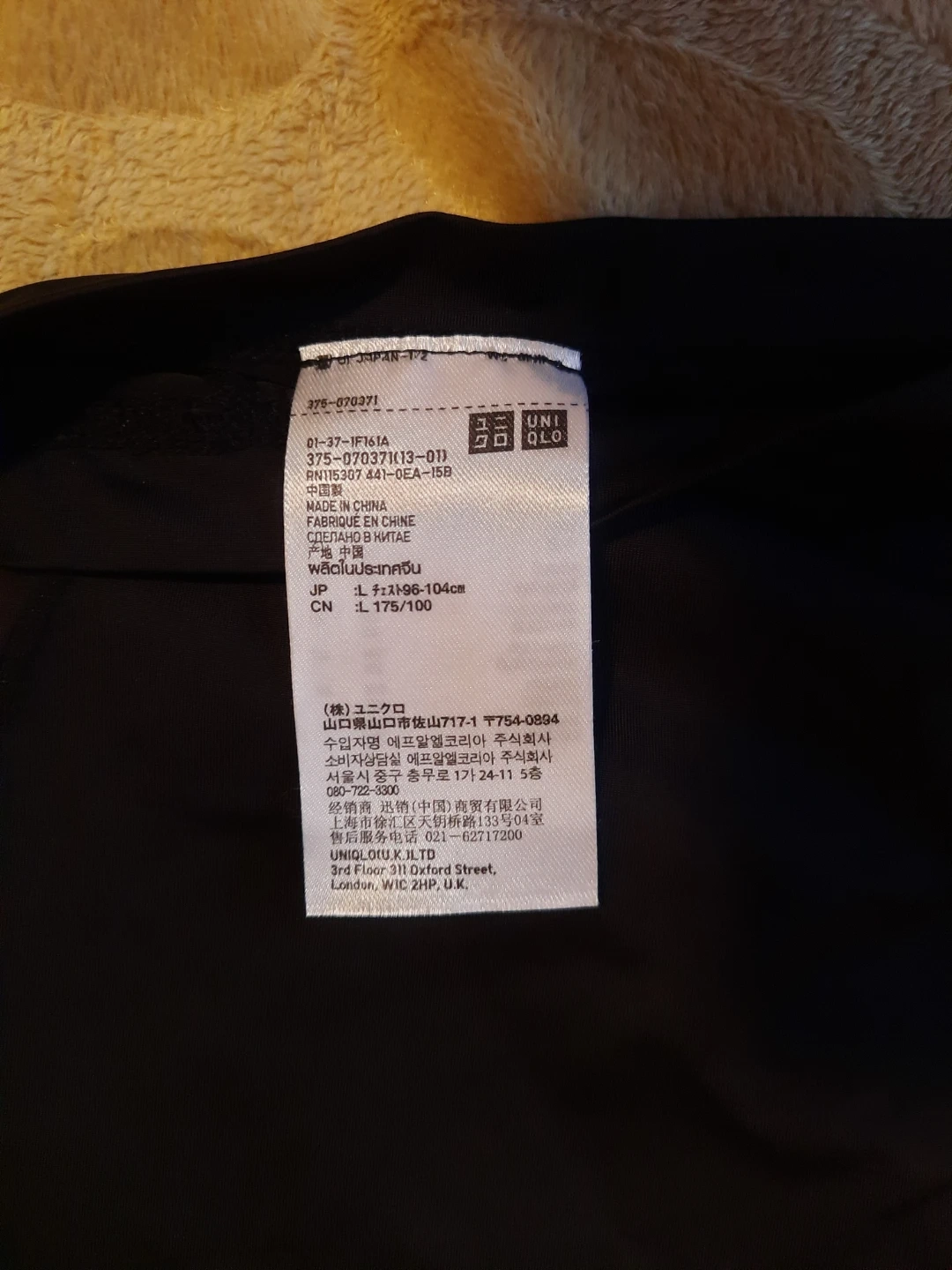 a Uniqlo black T-shirt in size L.