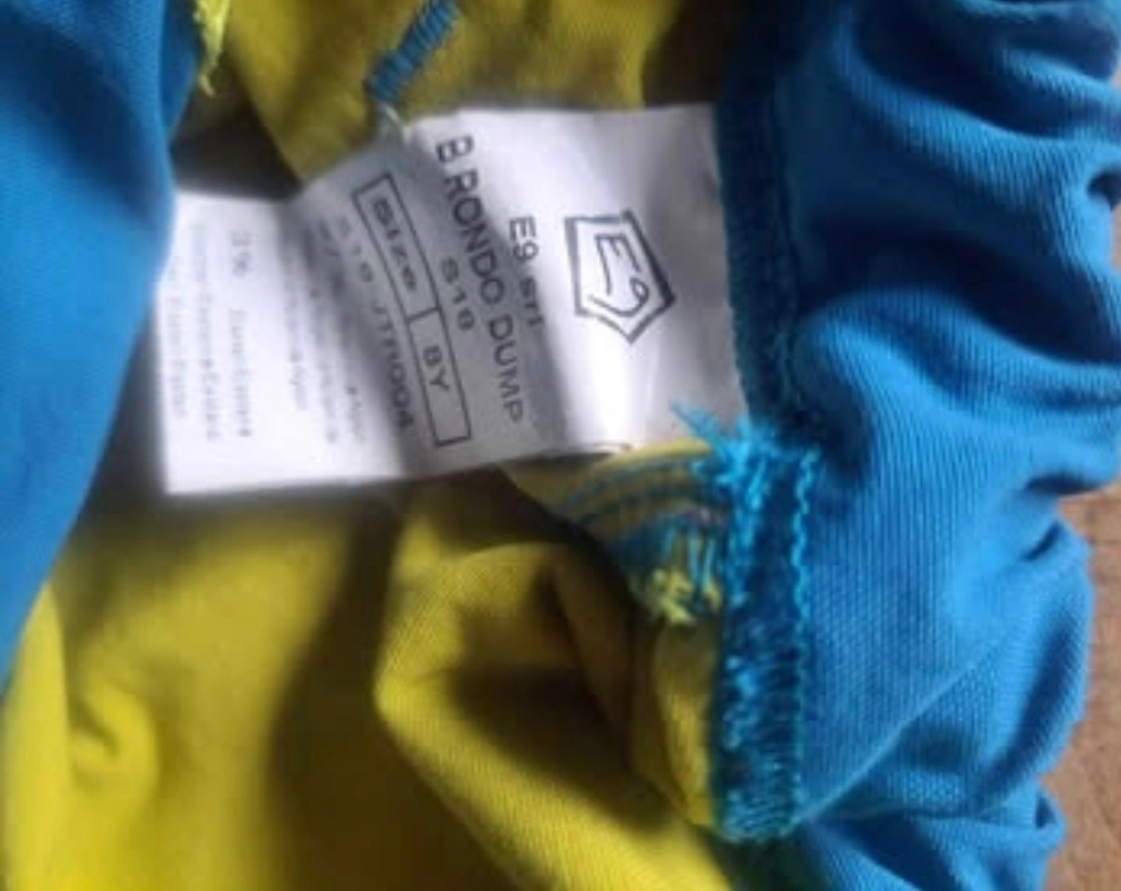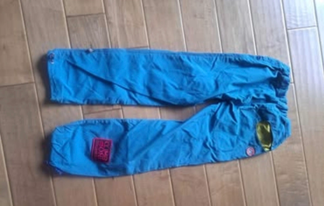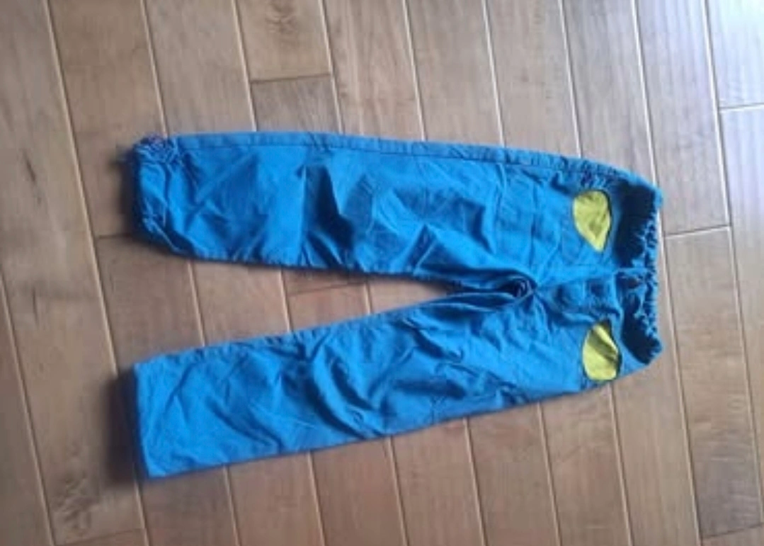 82Blue children's rockclimbing pants. Elastic waistband and cuffs. Unique design features. Size small or 116.
