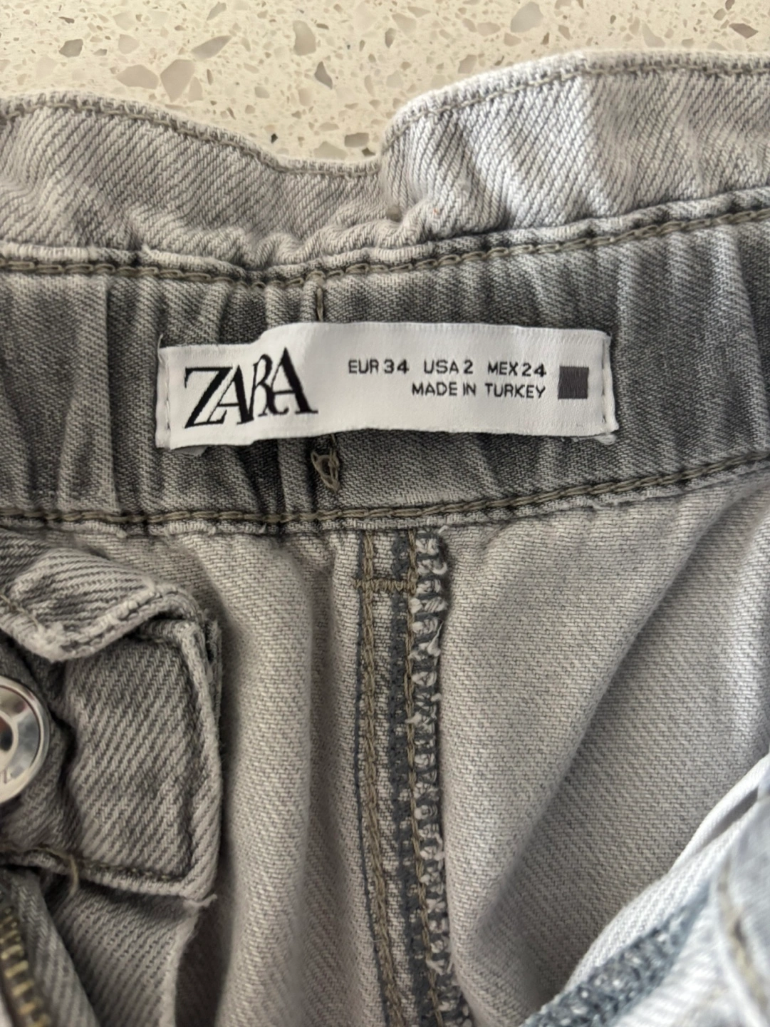 Buy & SellZara Grey Relaxed JeansZara Grey Relaxed Jeans$5Light grey relaxed fit jeans. Elastic waistband. Size 2 (EUR 34, MEX 24). Made in Turkey. Slight wear.ConditionLike newBrandZaraWHERE TO MEETSquare One Shopping CentreView MapSELLERLycaCity Center352 reviews0 chats·1 favorites·95 viewsSEND CHAT TO SELLERHi Lyca! I’m interested in your listing.Hi Lyca! I’m interested in your listing.Get the Karrot app to chatSign In to chat