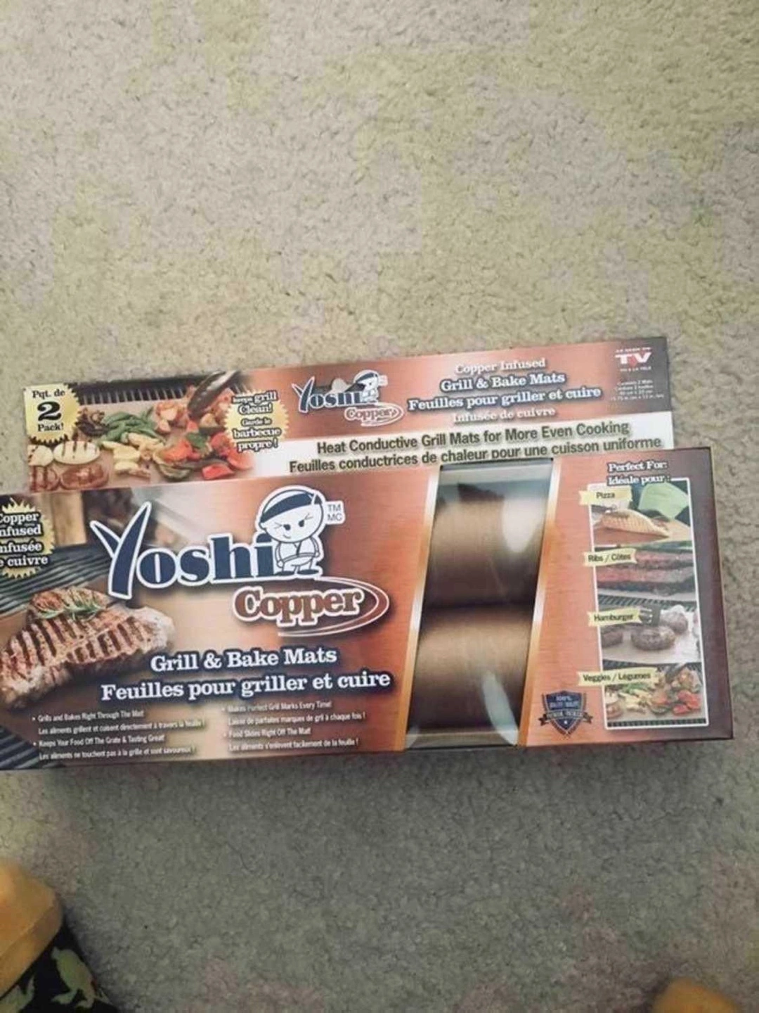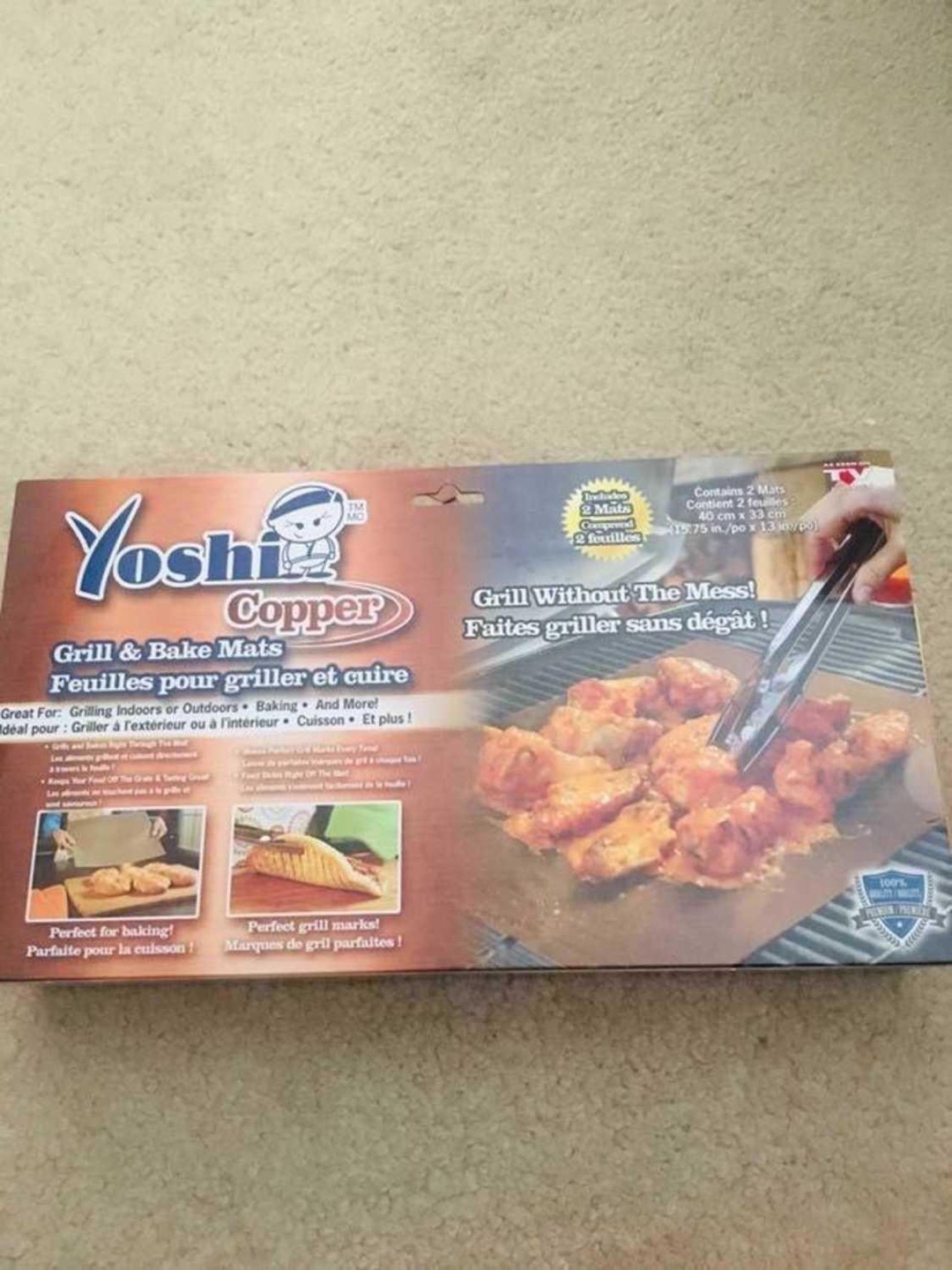 New grill and bake mats. Copper-infused. Makes grilling indoors or outdoors easier. Perfect for baking, grilling, and more. Reduces cleanup.