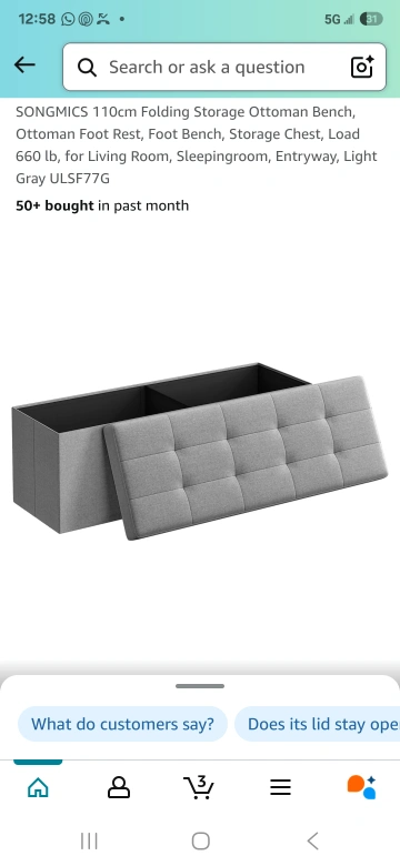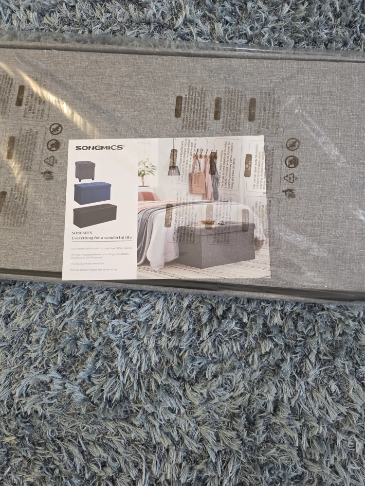 SONGMICS 110cm Folding Storage Ottoman Bench - Light Gray