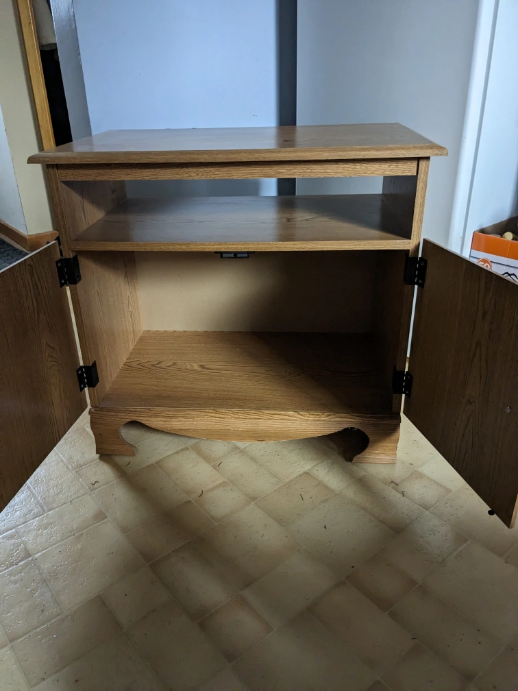 Buy & SellOak Wood Two-Door Storage CabinetOak Wood Two-Door Storage Cabinet$20Small wooden cabinet. Two open doors, shelving, and a top surface. Ideal for small spaces. Minor wear.ConditionGoodDimensions16 x 27 x 24 IncWHERE TO MEETCheck LocationView MapSELLERverifiedMartha CWest End711 review2 chats·0 favorites·32 views