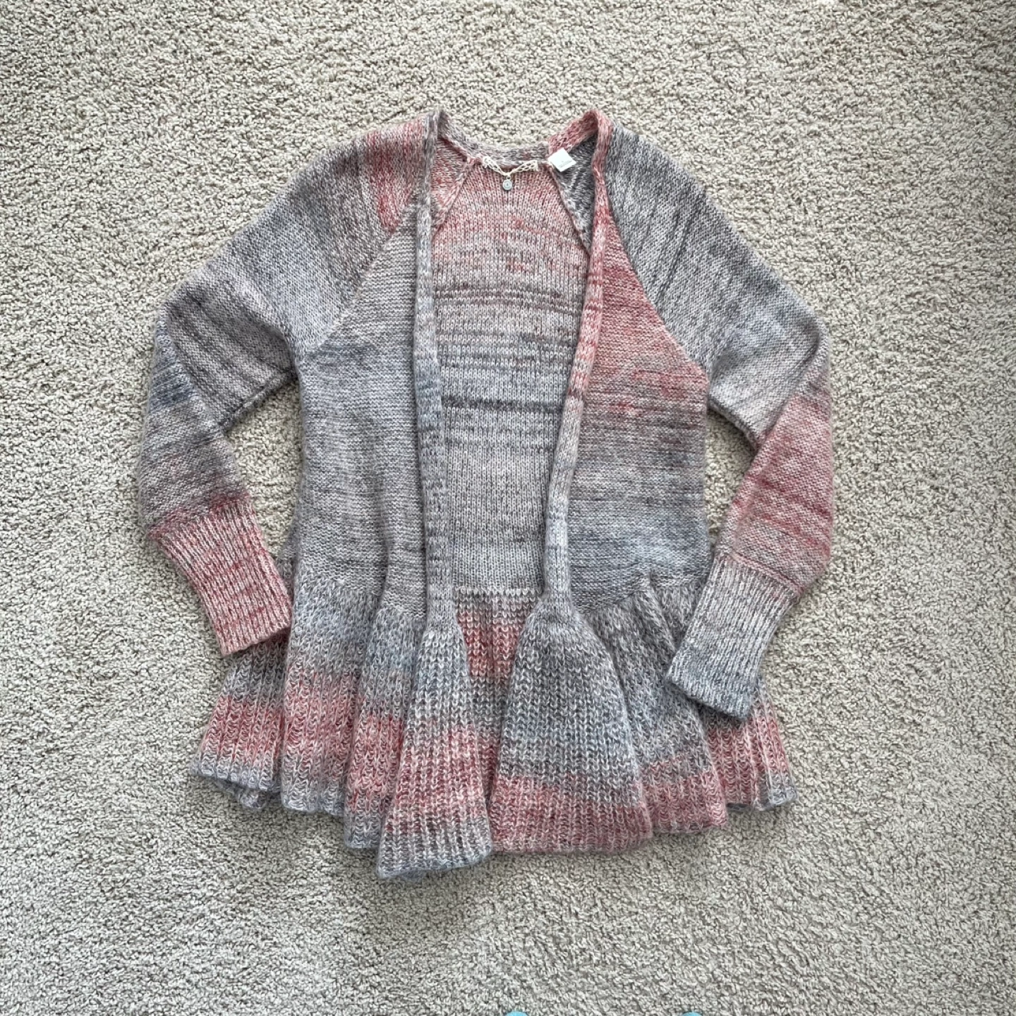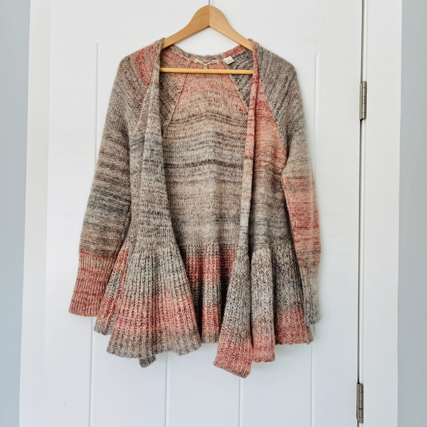 Beautiful Knitted & Knotted cardigan. Size small. Soft knit material. Features a colour ombre design and a flattering, slightly flared peplum hem. Long sleeves. Open front.