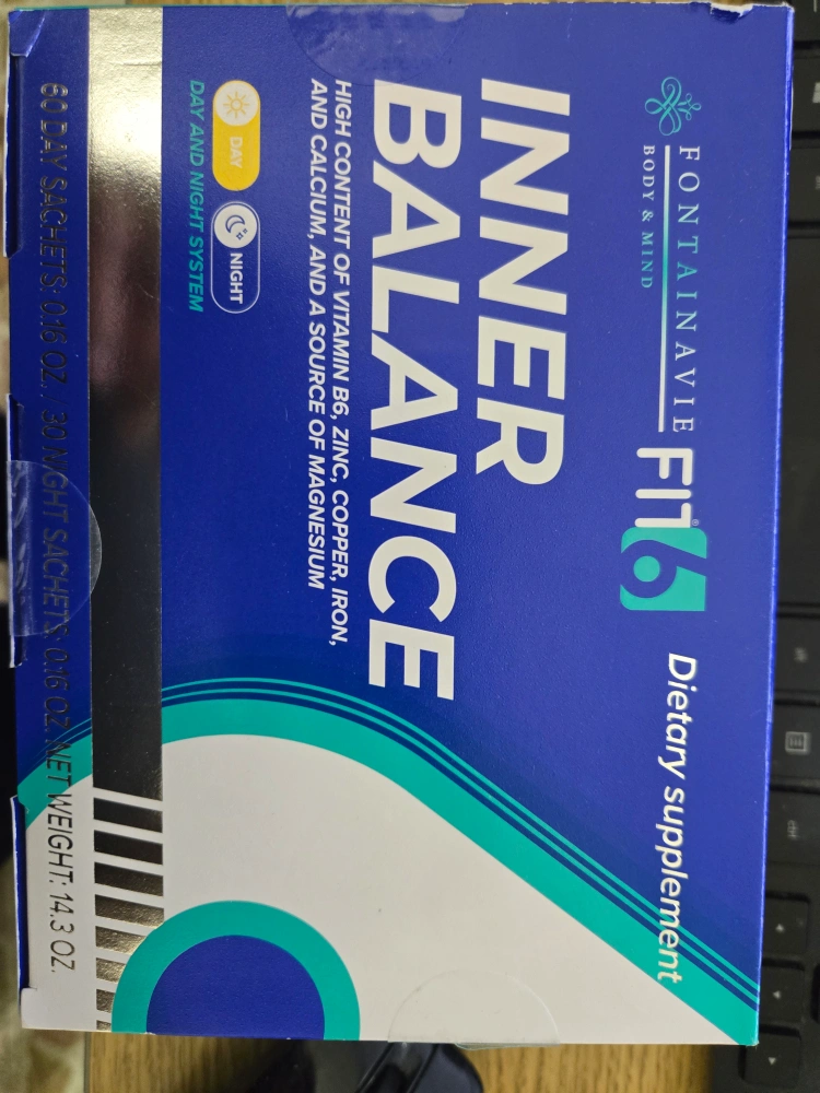6560 day supply of Inner Balance dietary supplement. High content of Vitamin B6, Zinc, Copper, Iron, and Calcium. Also a source of Magnesium. Day and night system.
