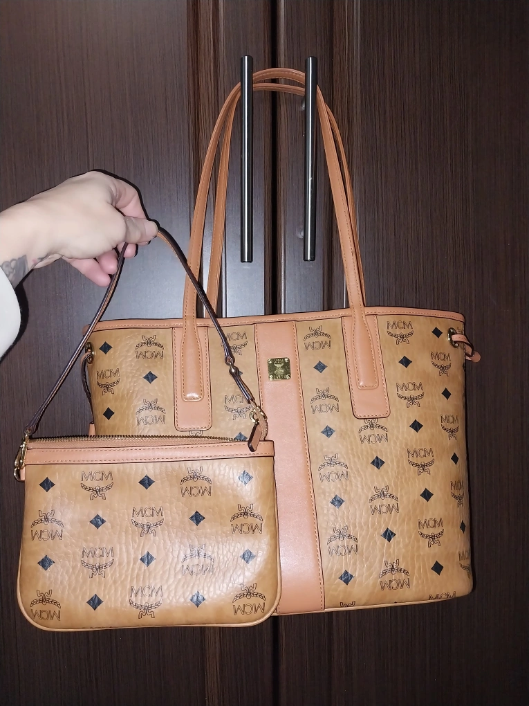 π Gorgeous MCM tote bag and matching cosmetic pouch. Leather and canvas with signature MCM Visetos print in cognac. Small cosmetic pouch has a top zipper closure. Tote bag features dual top handles. Pre-owned, minor wear. This is my favorite bag, hands down, I bought it new for myself for a celebratory gift. I'd be open to trades as well