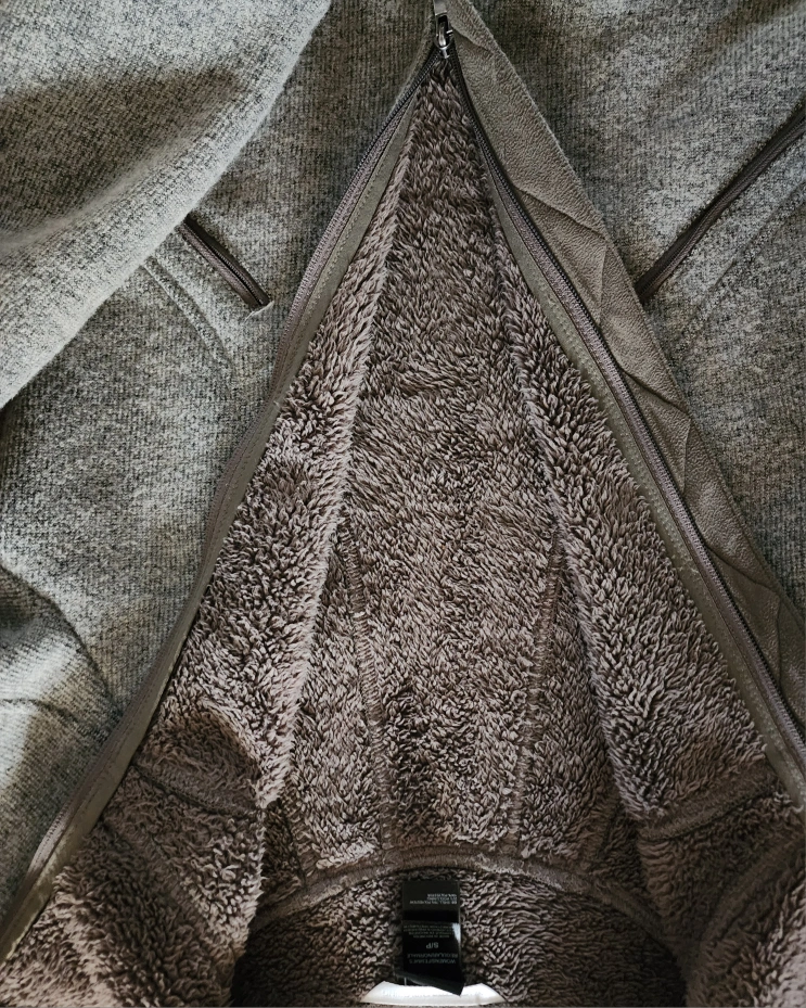 Grey and brown women's fleece jacket. Full zip closure. Soft sherpa lining. Size small. Excellent condition.
