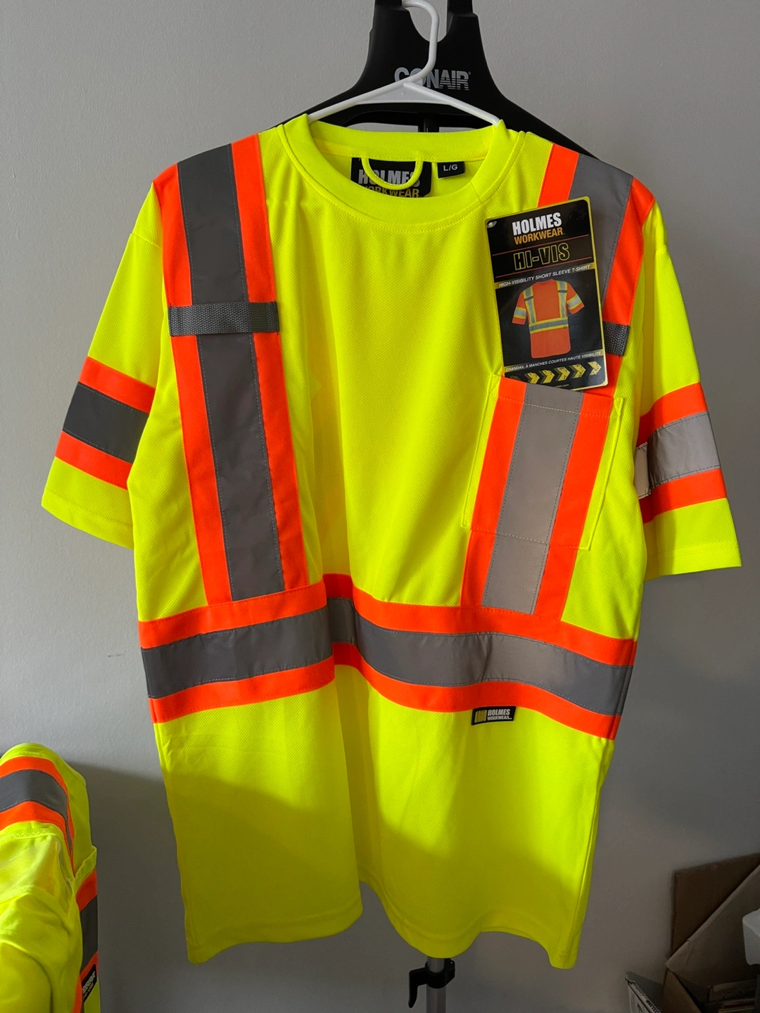 188Bright yellow hi-visibility safety shirt. Short sleeves. Reflective tape accents. Size large/extra-large. Never worn, tags still on. Pickup near Chandler Drive